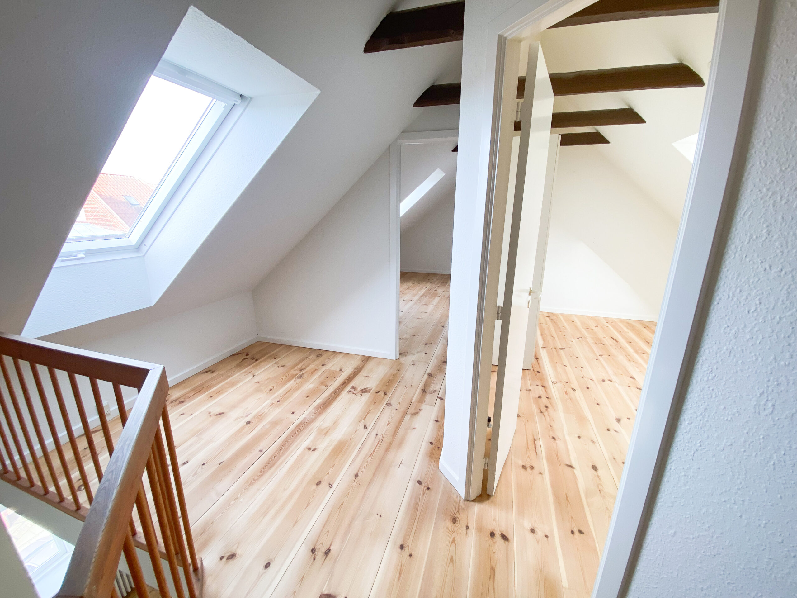 Tag trappen op til førstesalen, hvor du finder to velproportionerede værelser, der kan fungere som soveværelse, hjemmekontor eller andet efter behov, samt et badeværelse.