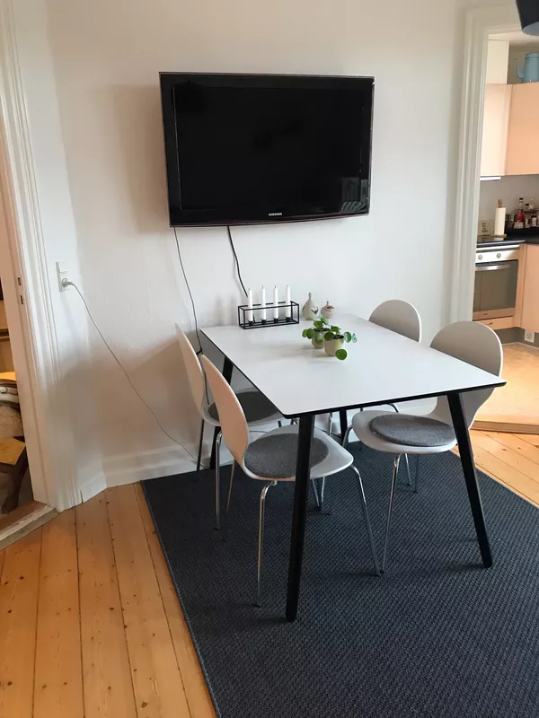 Når du træder ind i lejligheden, vil du straks bemærke de lyse trægulve, der strækker sig gennem hele boligen. Lejligheden er blevet nymalet, hvilket skaber en frisk og indbydende atmosfære ved indflytning. Beliggende i en charmerende ejendom, byder dette hjem på en unik kombination af ro og bekvemmelighed.