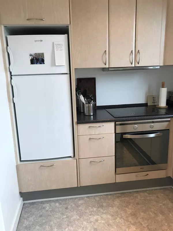 Køkkenet i lejligheden er ikke kun funktionelt men byder også på masser af opbevaringsplads. Badeværelset er elegant indrettet med fliser og gulvvarme, der tilføjer et strejf af luksus til din daglige rutine.