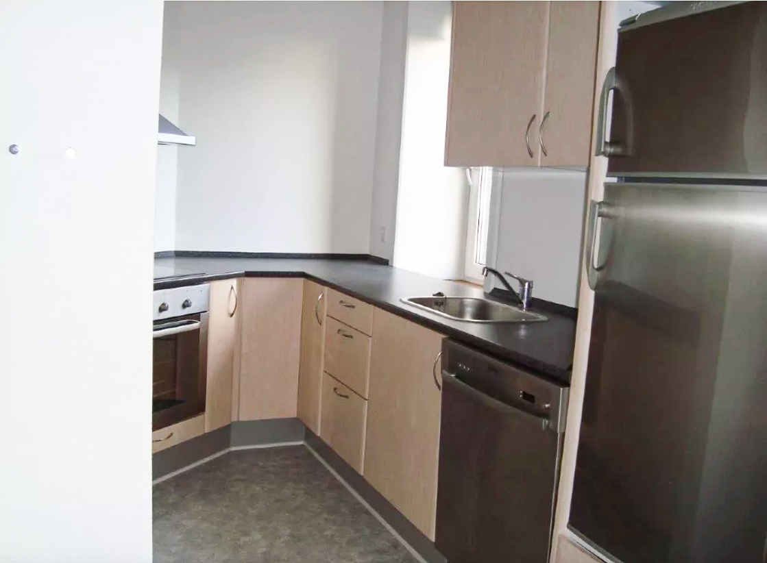 Lejligheden er indrettet med tre gode og regulære værelser, der giver fleksible indretningsmuligheder – perfekt til både par, små familier eller som delelejlighed. Det store spisekøkken er hjertet af boligen og fremstår med alle nødvendige hvidevarer, så der er rig mulighed for både hverdagens madlavning og hyggelige middage med venner og familie.