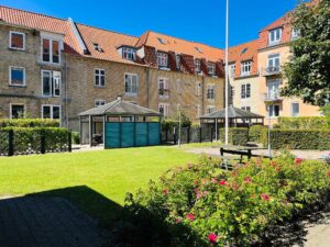 Til lejligheden hører hyggeligt gårdmiljø fælles med andre ejendomme med grønne områder, stisystem, cykelparkering mv..