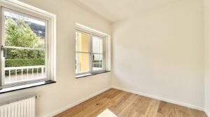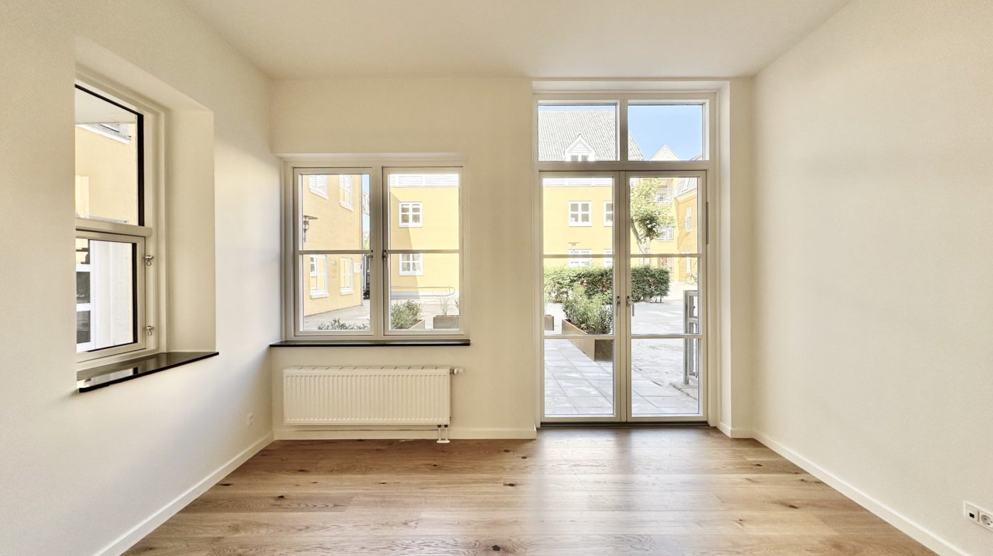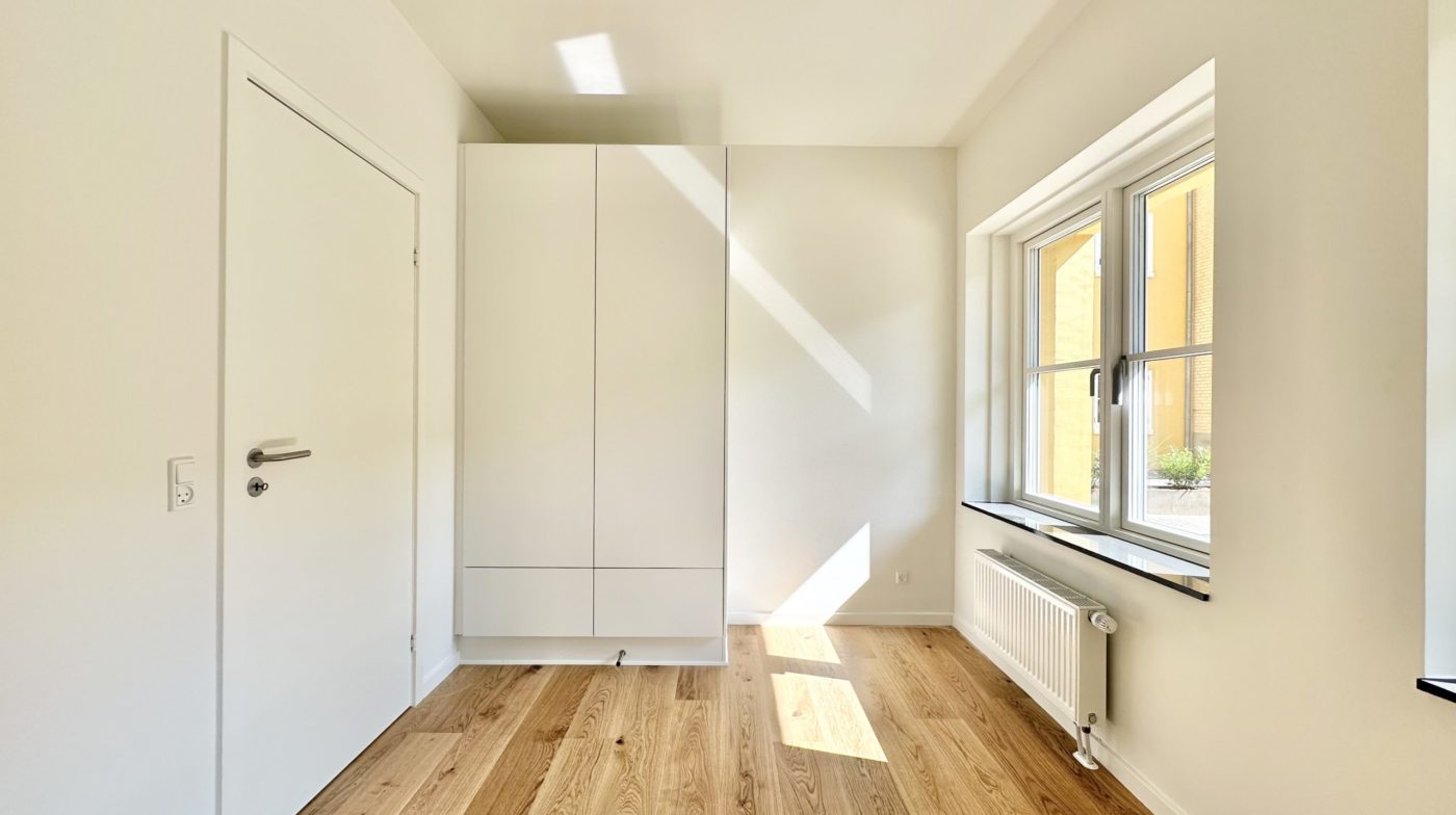 Lejligheden består af 2 lyse værelser med faste skabe – perfekt til både sove- og arbejdsrum.