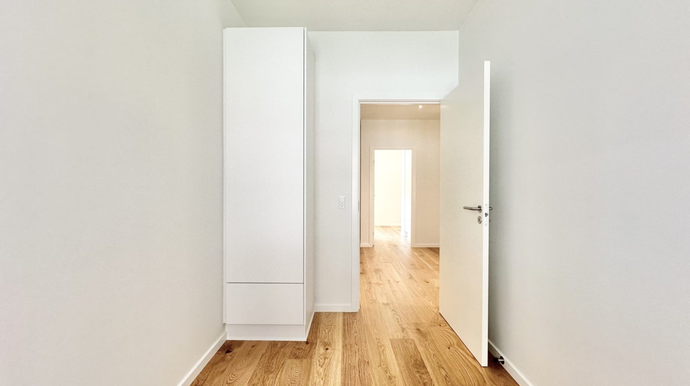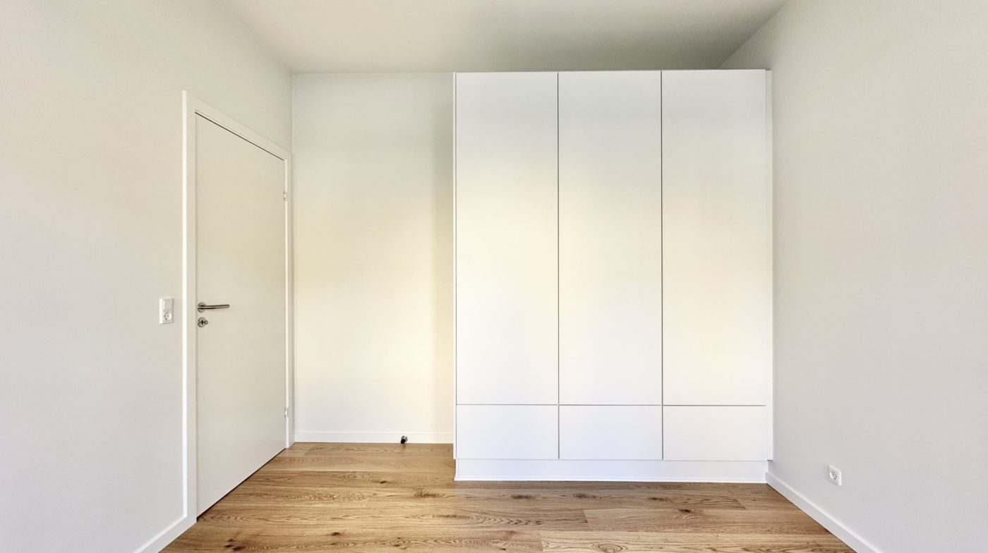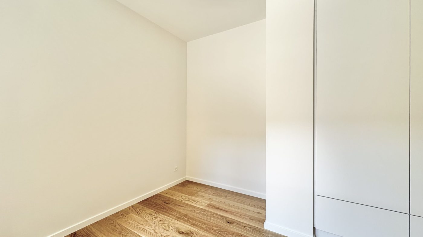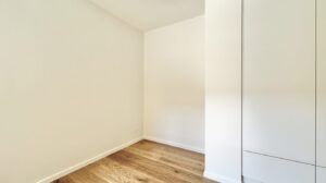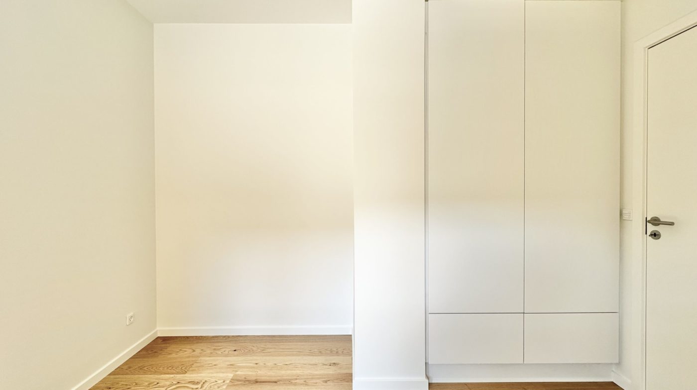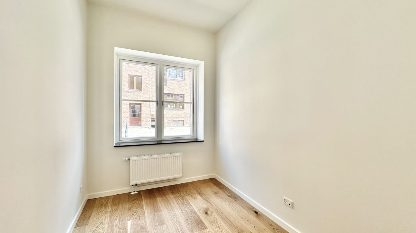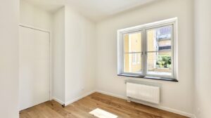 Der er et godt børneværelse med faste skabe samt et ekstra stort soveværelse med faste skabe. Overalt i lejligheden er der elegante egetræsgulve med gulvvarme, som bidrager til en varm og indbydende atmosfære.