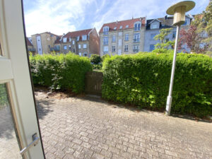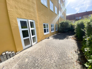 Der er en dejlig også en gårdhave til ejendommen, der ligger mod syd. Her er bænke og lidt legeplads.