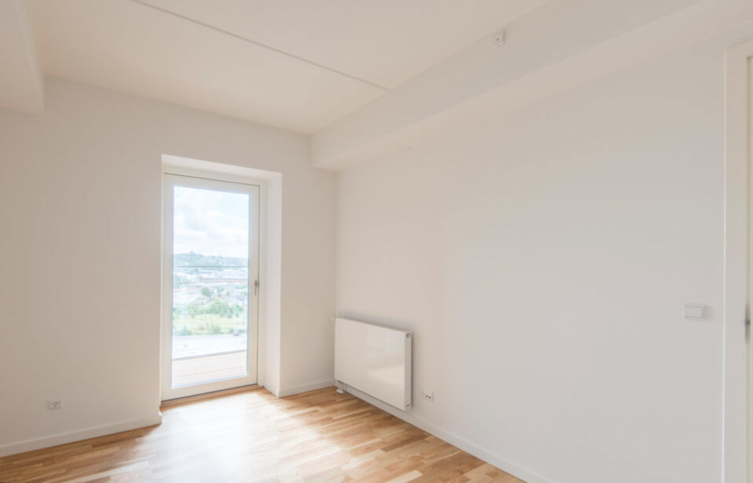 Fra både stue og soveværelse er der direkte adgang til en stor, solrig altan med flot udsigt over byen. Her finder du også et praktisk lille depotrum. Køkken, bad og garderobeskabe er fra Invita og fremstår i tidløst design.