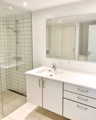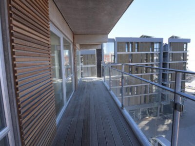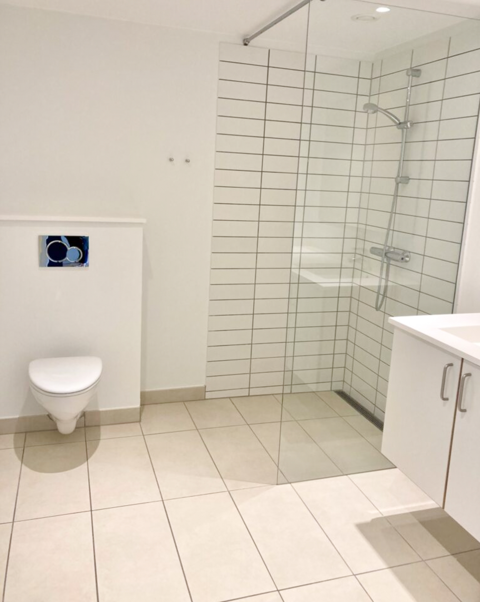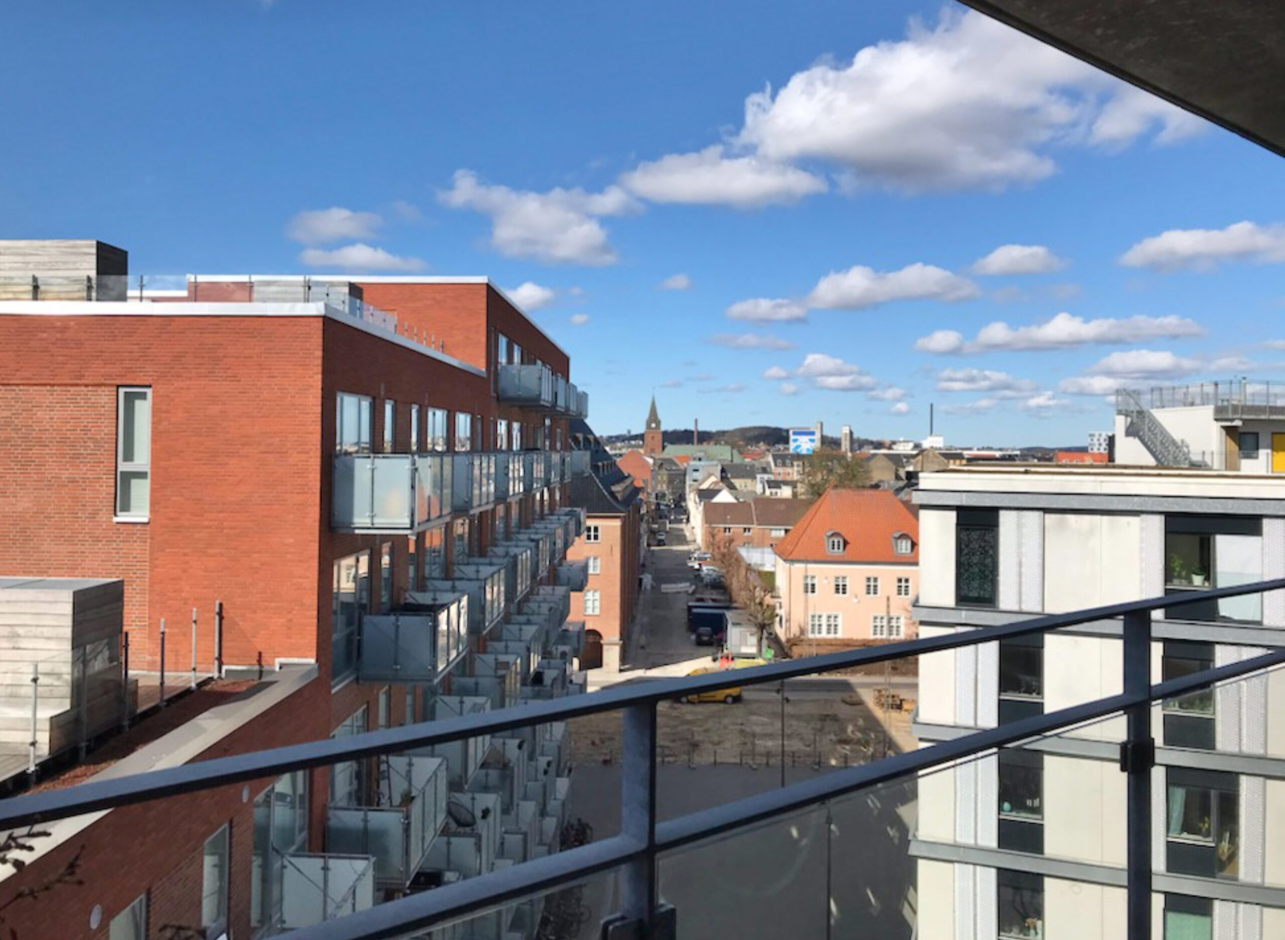 Billederne er ikke fra denne lejlighed men en tilsvarende og med de samme materialer af samme høje kvalitet. Ligeledes tages der forbehold for, at altanen på billedet også er fra en anden lejlighed og det er dermed ikke sikkert, at der er samme udsigt.