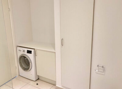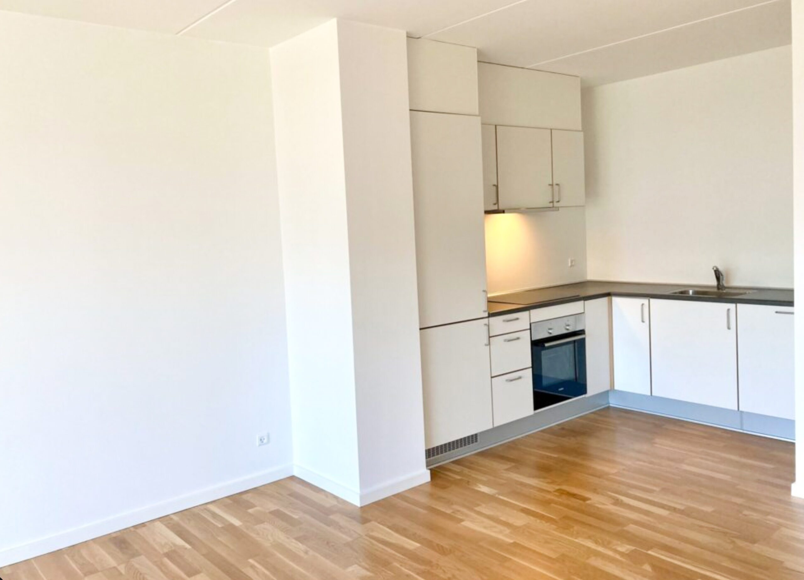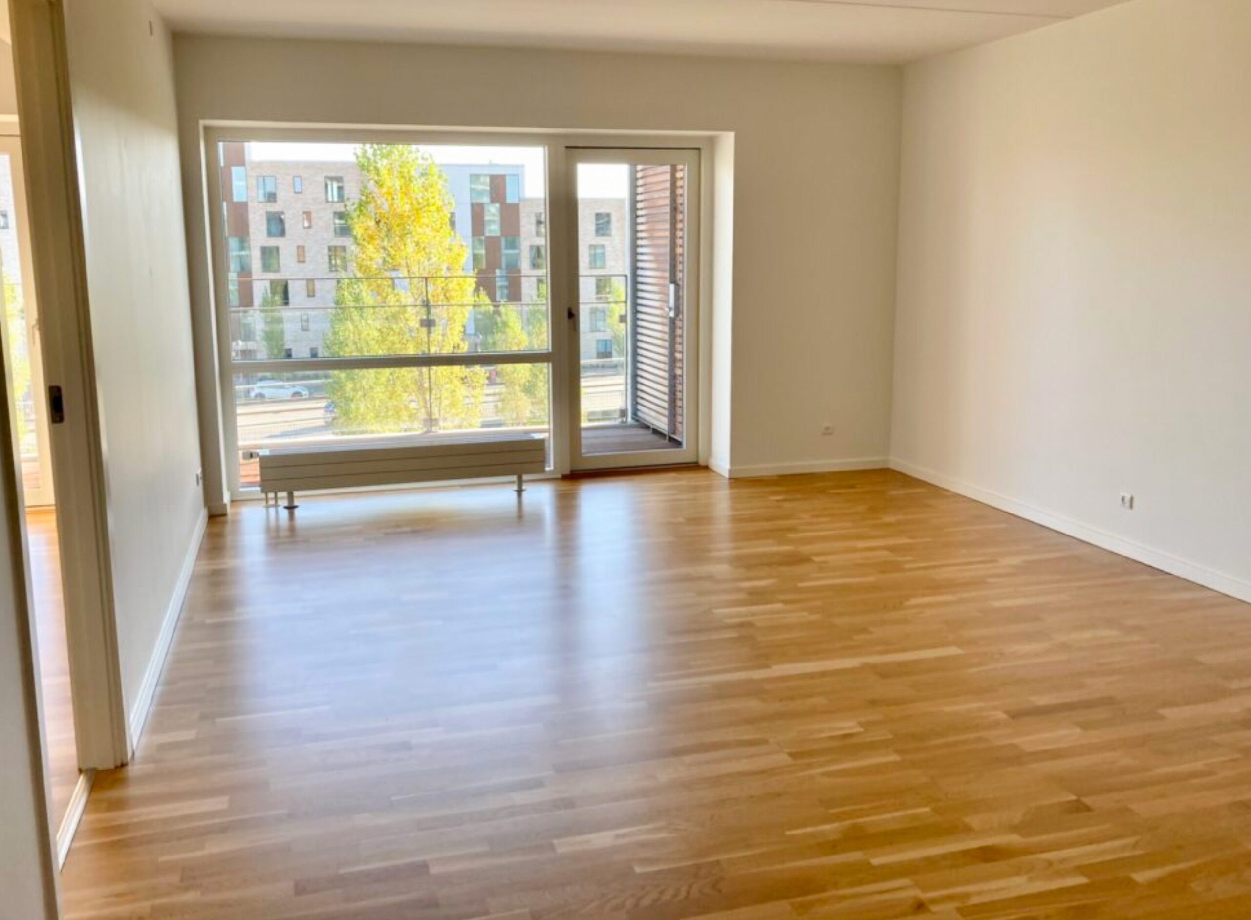 Skøn 2-værelses lejlighed i nyere ejendom fra 2016 på det spændende godsbaneareal. Lejligheden indeholder køkken og stue i ét, rummeligt soveværelse med god skabsplads samt et dejligt badeværelse. Interiøret i køkken, badeværelse samt garderobeskabe er hvidt med egetræskant fra Invita. Naturlakeret egetræsparket i alle rummene samt lyse klinker og gulvvarme på badeværelset. Fra soveværelset og køkkenet/stuen er der direkte adgang til den dejlig store altan. Der er både depotrum på altanen samt tremmerum i kælderen – dermed gode opbevaringsmuligheder.