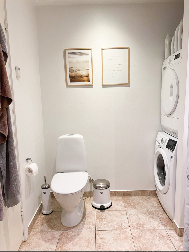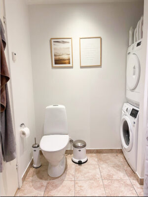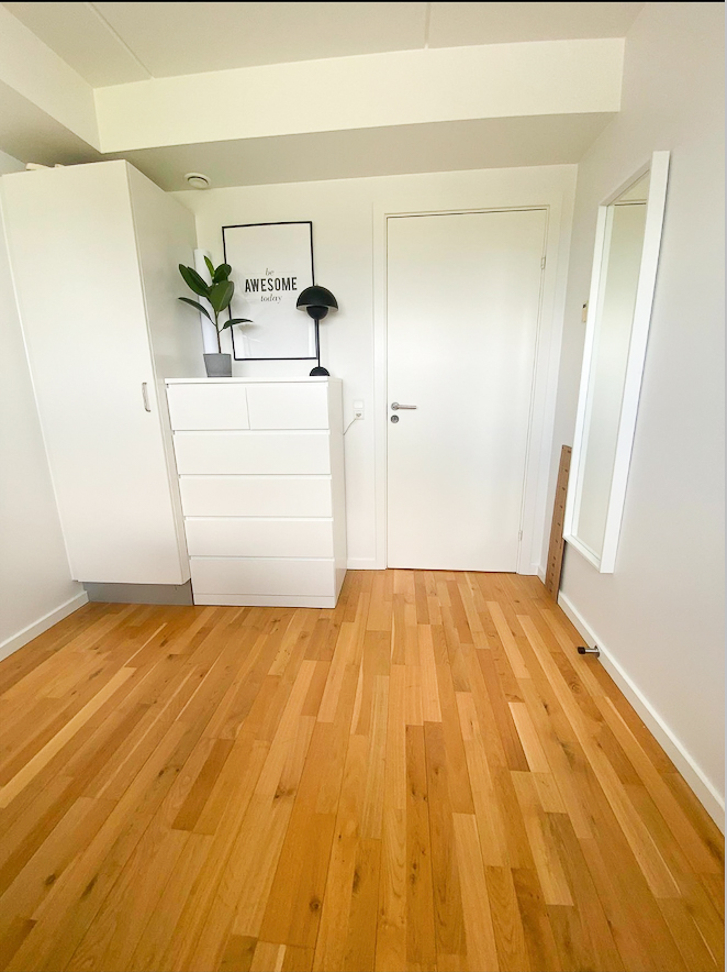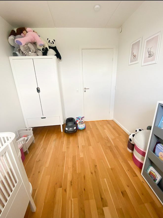 De tre værelser ligger side om side og har alle indbyggede skabe. Til slut mangler I blot at se badeværelset, der har en anseelig bruseniche med tidssvarende klinker fra gulv til loft, og dertil kommer en vaskesøjle. Hjemmet er klimavenligt, og det er tilladt at have husdyr.