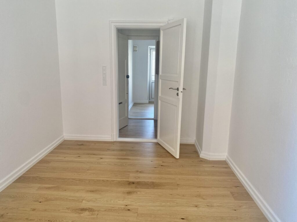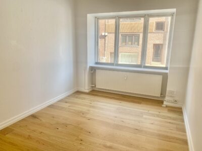 Til højre fra indgangen har vi værelset. Det er et godt firkantet rum med nyt gulv. Her kan man prøve at få plads til så meget som muligt. En god idé vil være en sovesofa.