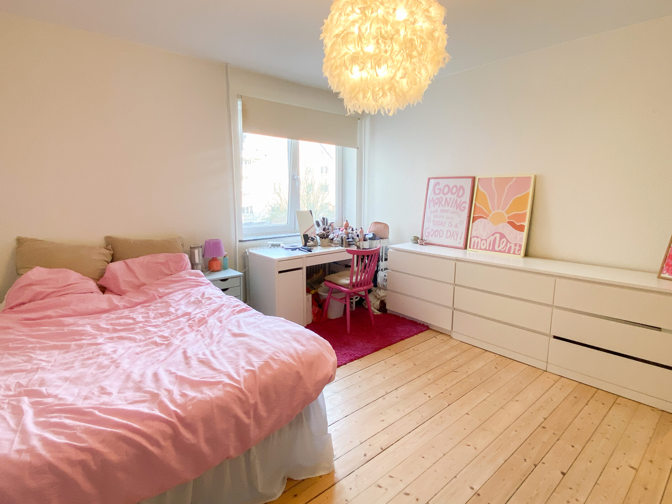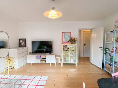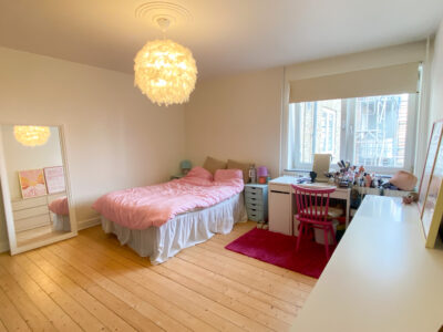 Lejligheden rummer to rummelige værelser. Soveværelset er særligt rummeligt med plads til større møbler samt et indbygget kosteskab, og der strømmer naturligt lys ind gennem vinduerne. Stuen er lys og let at indrette takket være dens gode størrelse og de store vinduespartier.