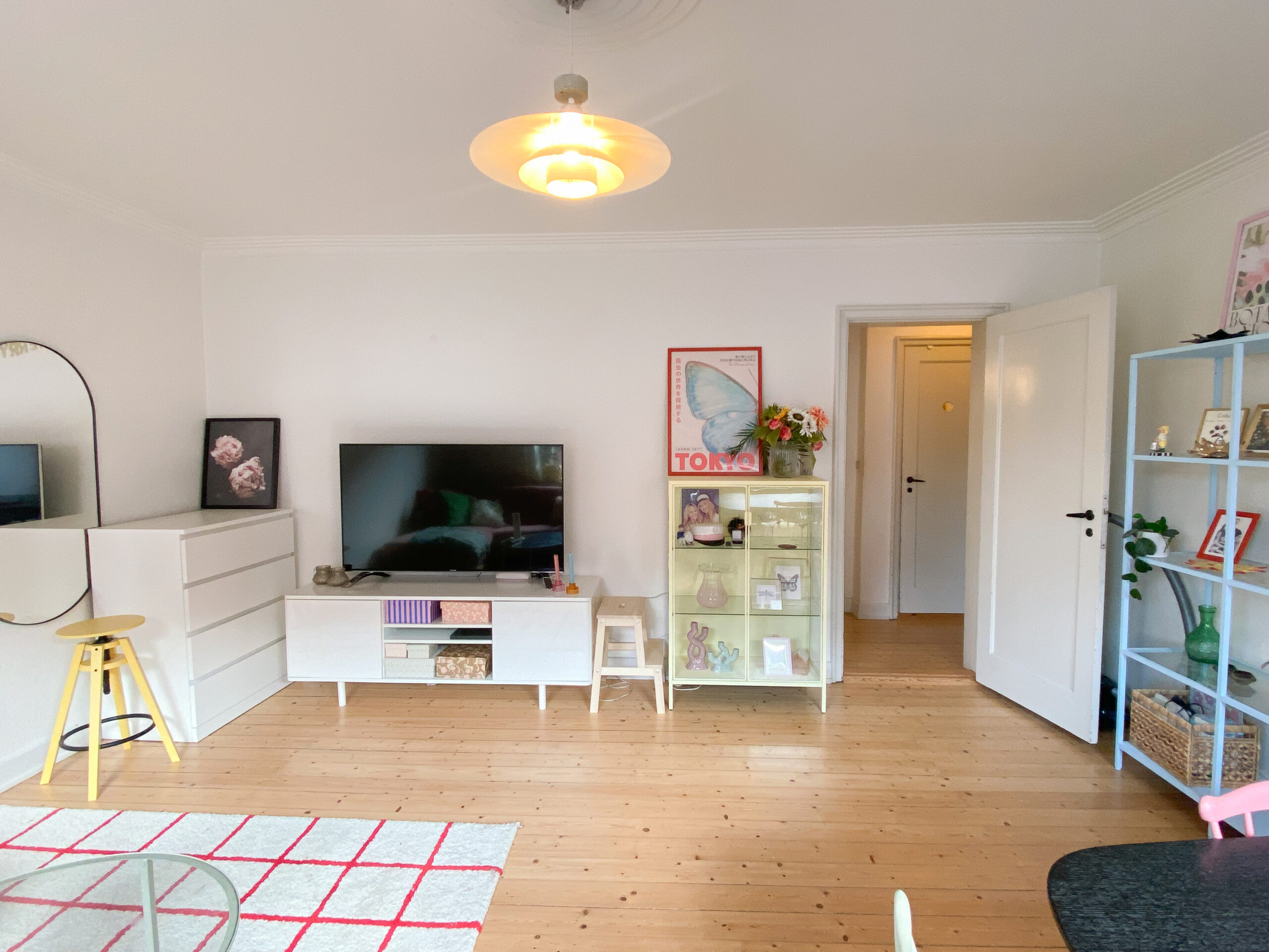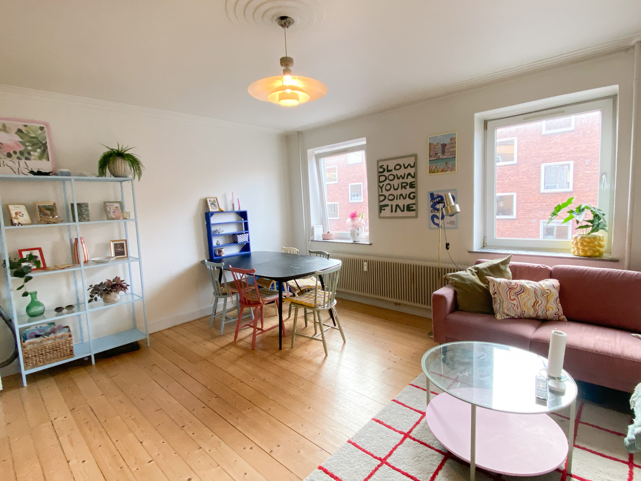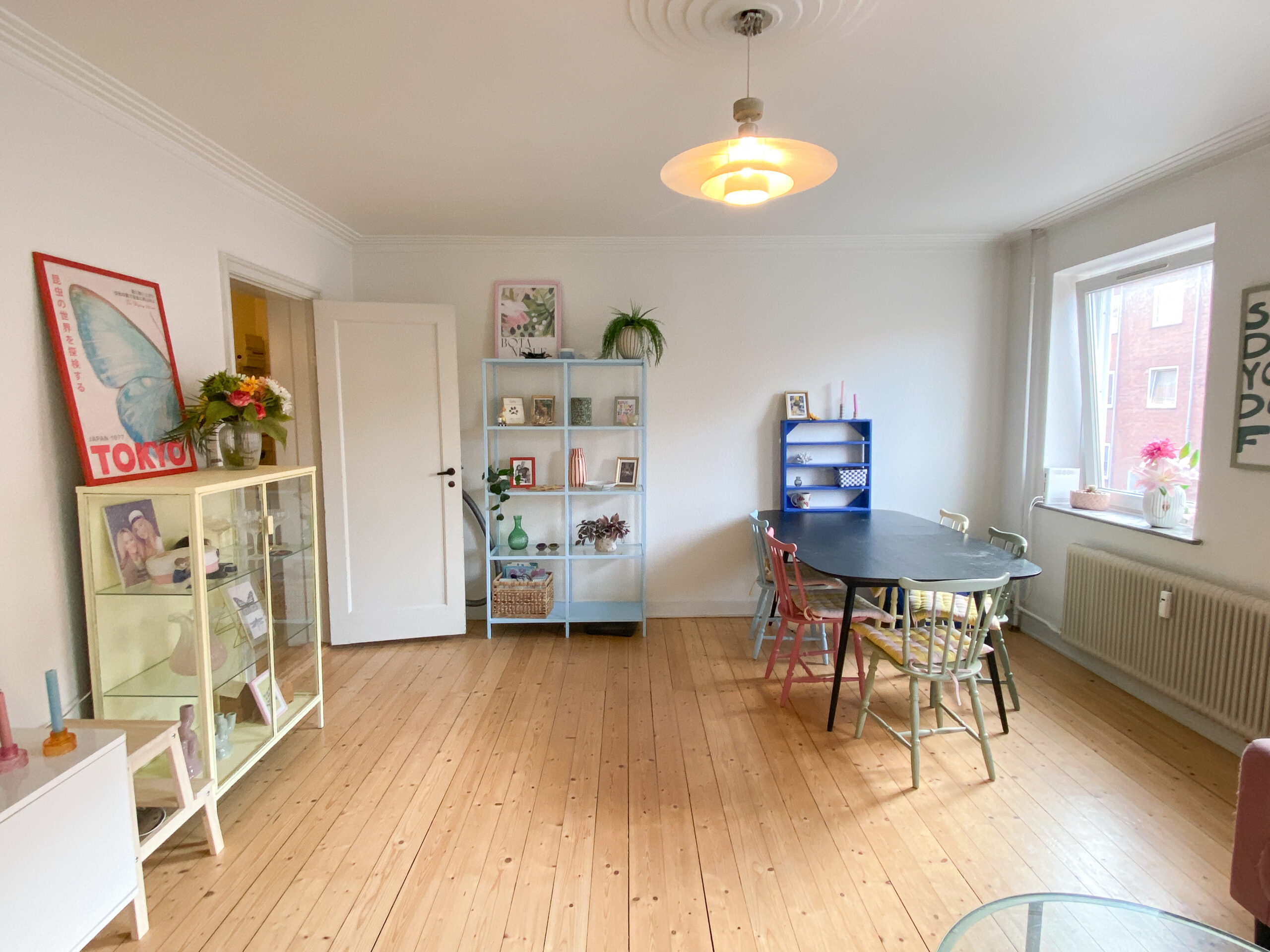 Gennem hele lejligheden ligger smukke, robuste trægulve, som giver varme og karakter til hjemmet.