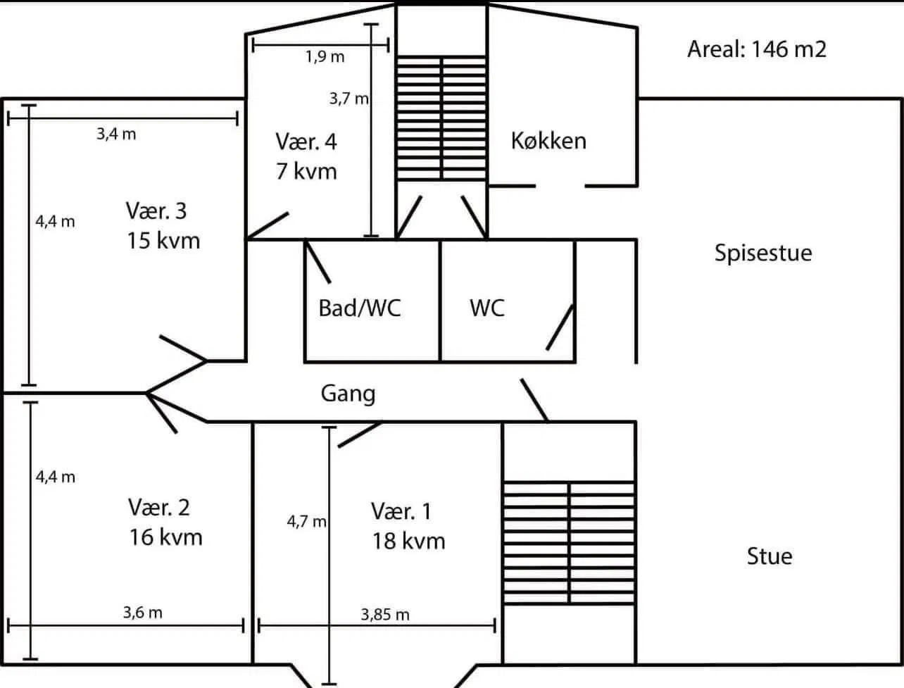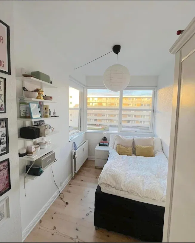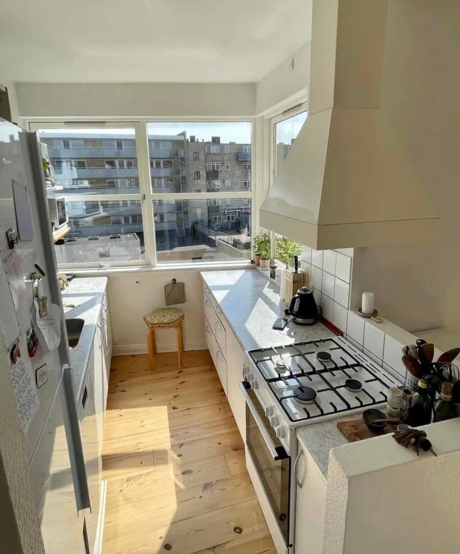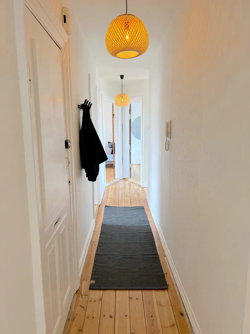 Lejligheden byder på en indbydende entré, der åbner op til en rummelig stue med plads til både sofaarrangement og en hyggelig læsekrog. Det funktionelle køkken ligger i forlængelse af stuen, hvilket skaber en naturlig samlingspunkt for hverdagens måltider og gæster. Her er der gode vinduer, der lader lyset strømme ind, samt rigelig bord- og skabsplads, inklusiv opvaskemaskine. Boligen rummer tre værelser, der alle er indretningsvenlige; de to store værelser er ideelle til både seng, opbevaring og arbejdsplads, mens det mindre værelse passer perfekt som kontor eller børneværelse. Badeværelset er lyst med bruseniche, og der er et separat gæstetoilet – en praktisk løsning for deling.