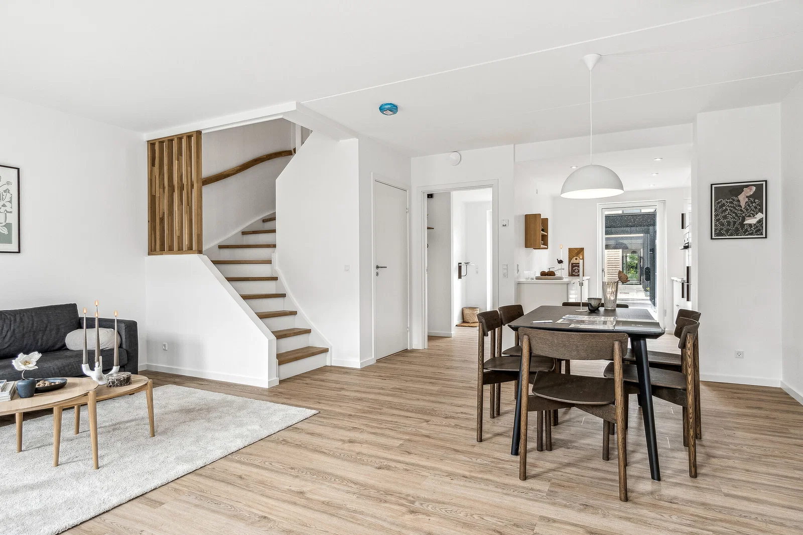Velkommen til dette rækkehus hvor lys og funktionalitet møder en moderne nordisk stil. En indflytningsklar bolig med en behagelig atmosfære, ideel til familien eller som delevenlig bolig.