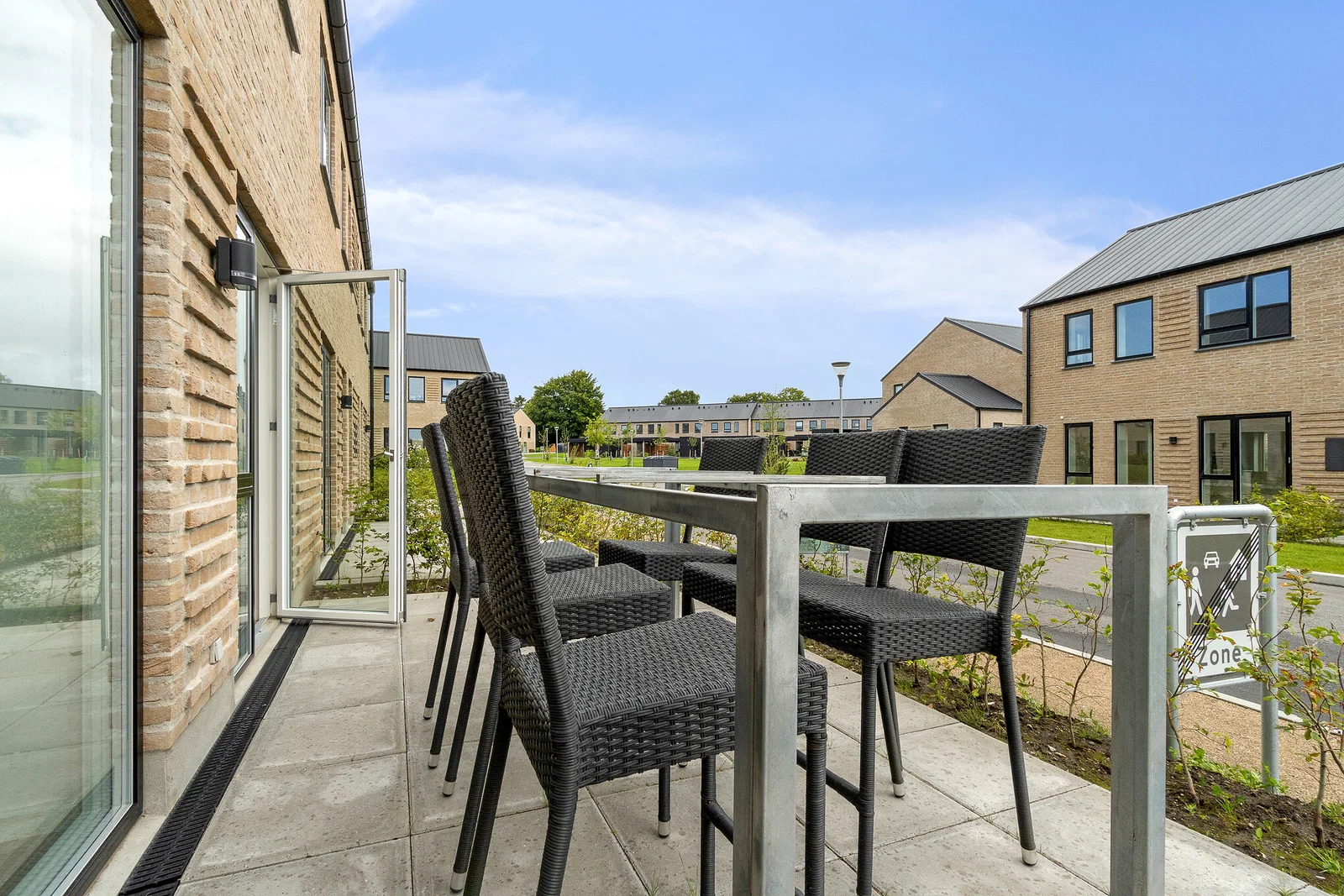 Forhaven byder på et terrasseareal, et praktisk redskabsrum samt en overdækket carport med plads til to biler. Der er mulighed for at etablere el-ladestander ved carporten, hvilket er en moderne detalje i hverdagen.