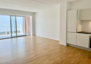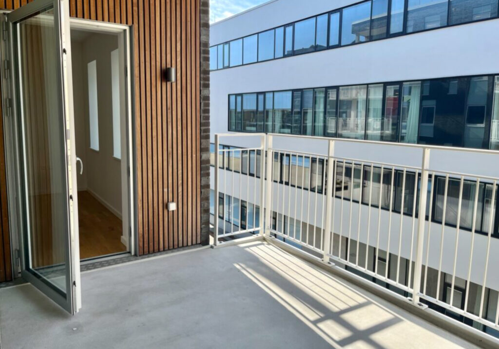 Spændende 3-vær. lejlighed på det attraktive Godsbaneareal. Lejligheden indeholder lækkert køkken og stue i ét. Dejligt stort badeværelse med flotte klinker i travertin look. Soveværelse samt fint værelse – begge med indbyggede skabe. Interiøret i alle rum er fra Invita. Flotte egetræs parketgulve i hele lejligheden. Fra soveværelse og stue er der adgang til dejlig stor altan. En lejlighed, hvor der er kræset for deltaljerne. Selve ejendommen rummer en smuk overdækket atriumgård, hvor ejendommens beboerne kan mødes, og i kælderen, der er i to niveauer, er der mulighed for leje af p-plads. Tilkørsel hertil sker via en smart bilelevator. Der er ligeledes brugsret til en flot fælles tagterrasse med smuk udsigt over Aalborg og omegn.