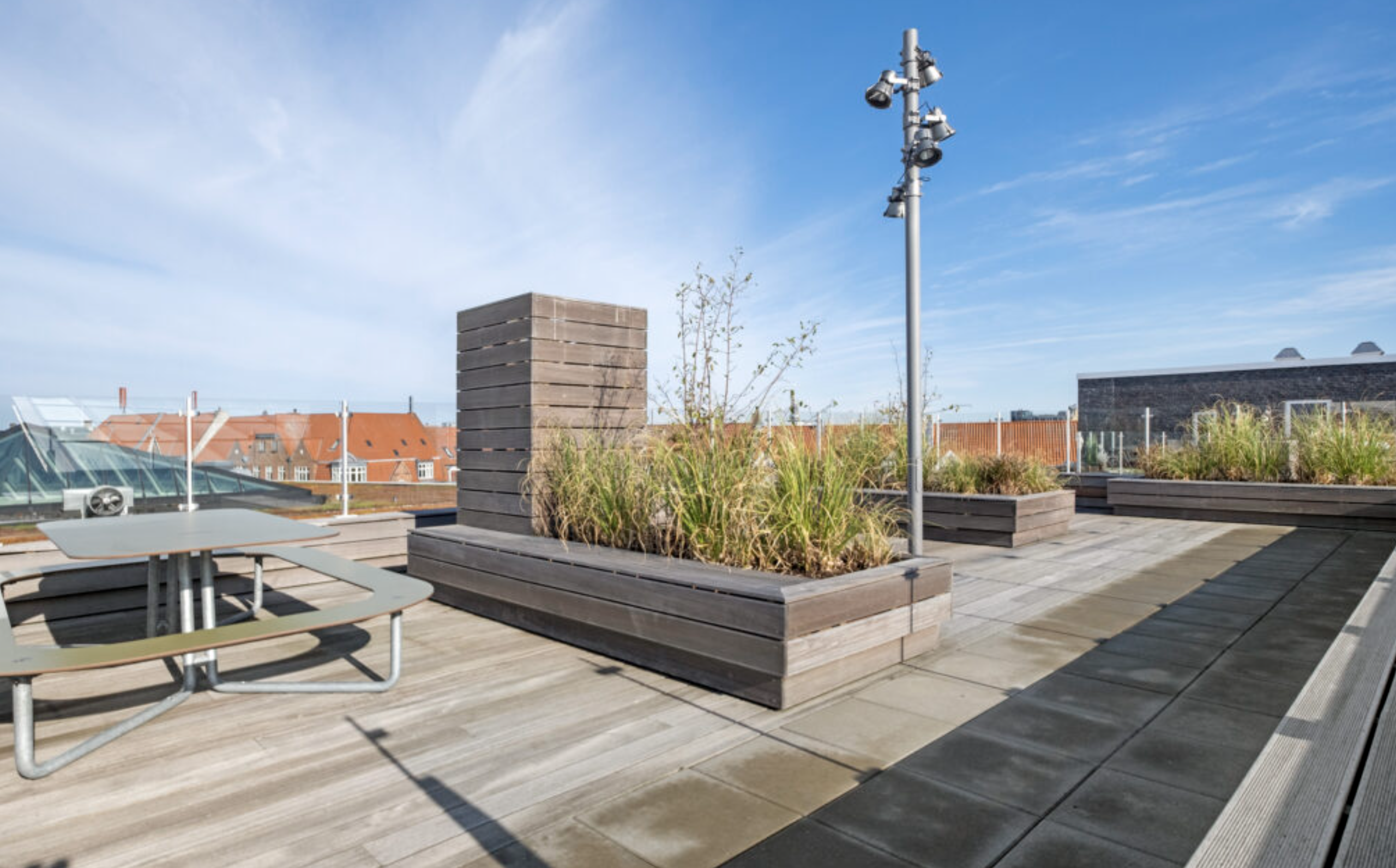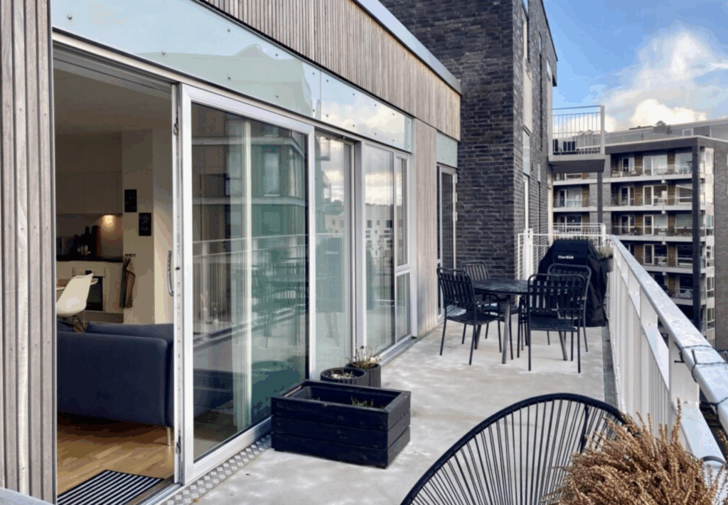Lækker 3-vær. lejlighed i nyere unikt byggeri fra 2018 på det spændende Godsbaneareal. Lejligheden indeholder entre med skabe, lækkert køkken og stue i ét. Dejligt stort badeværelse med flotte klinker i travertin look. Værelse med skabe samt lækkert soveværelse med walk-in. Interiøret i alle rum er fra Invita. Flotte egetræs parketgulve i hele lejligheden. Fra soveværelse og stue er der adgang til lækker stor sydvendt altan. En lejlighed, hvor der er kræset for deltaljerne. Selve ejendommen rummer en smuk overdækket atriumgård, hvor ejendommens beboerne kan mødes, og i kælderen, der er i to niveauer, er der mulighed for leje af p-plads. Tilkørsel hertil sker via en bilelevator. Der er ligeledes adgang til fælles tagterrasse med smuk udsigt.