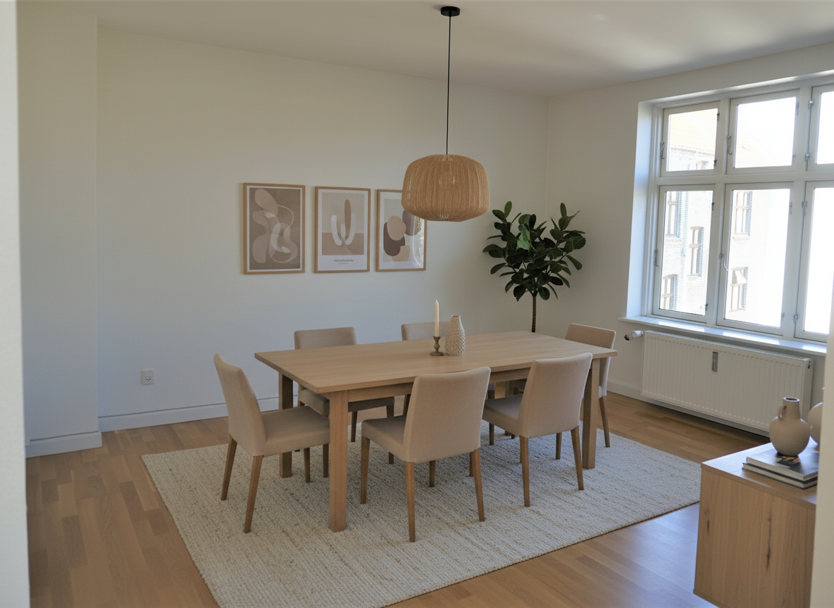 Lejligheden byder på et skønt køkkenalrum, der giver god plads til madlavning og sociale stunder. De store, lyse værelser åbner op for mange indretningsmuligheder og skaber en indbydende stemning, perfekt til både hverdag og gæster. Det renoverede køkken og badeværelse tilføjer et moderne og stilrent udtryk til boligen.