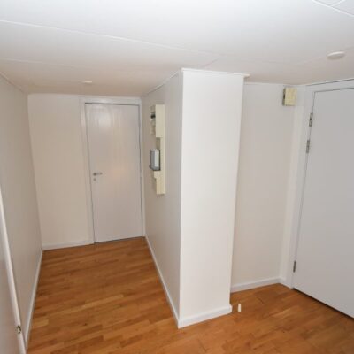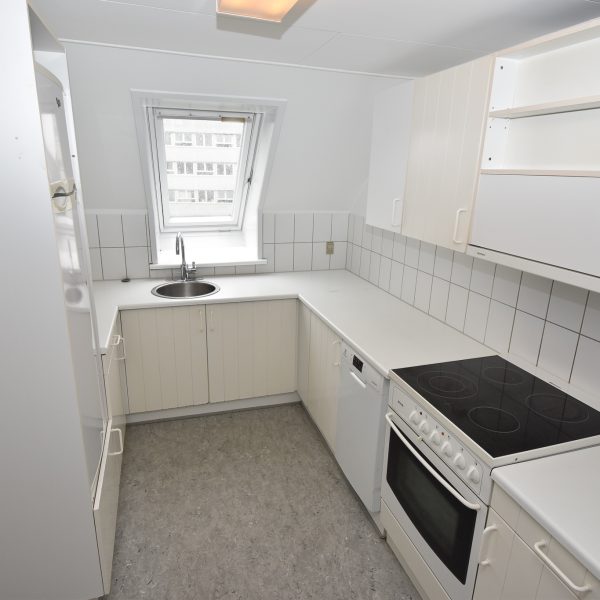 Lejligheden byder på en stor og indbydende entré med flot lakeret trægulv, dørtelefon og adgang til bagtrappe. Det lyse køkken har hvide elementer og er udstyret med køle-/fryseskab, komfur, emhætte – og der installeres en helt ny opvaskemaskine, så alt er klar til hverdagen.