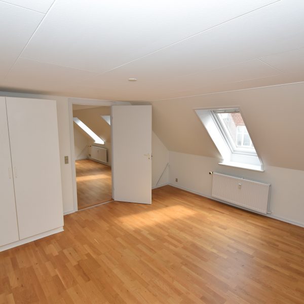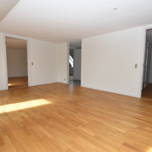 Stuen er stor og lys med trægulv og direkte adgang til køkkenet – ideelt til både afslapning og fællesskab. Et af værelserne har udgang til altan og skønt lysindfald, mens de to øvrige værelser ligeledes har lakerede trægulve, gode størrelser og faste skabe.