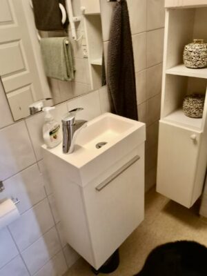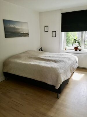 De nyere gulve i hele lejligheden tilføjer en frisk fornemmelse og skaber en lys og indbydende atmosfære. Badeværelset er en sand perle med sin hvide indretning og separat bruseniche. Her finder du nyere materialer, der tilføjer et moderne touch og skaber en behagelig oase for morgenrutinerne.