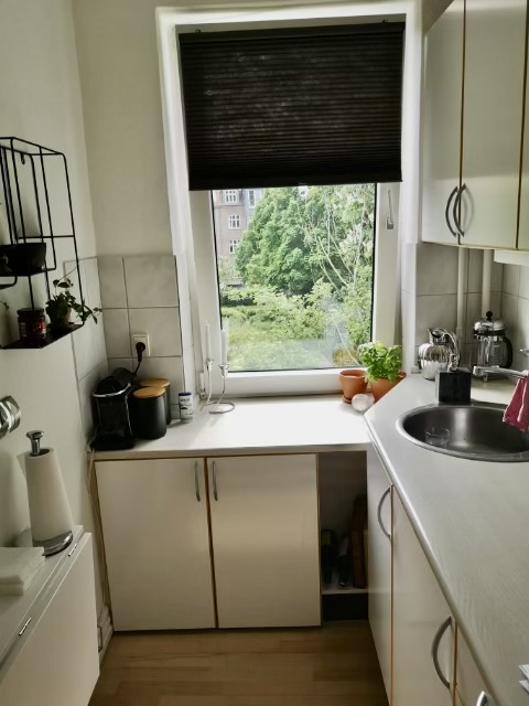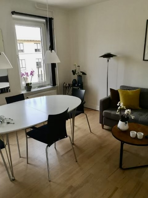 Lejligheden tilbyder desuden praktiske faciliteter som fælles vaskeri og depotrum i kælderen, hvilket gør hverdagen mere bekvem. Der er også cykelparkering i baggården, så du kan nemt opbevare din cykel sikkert og tæt på hjemmet. Dette er en skøn lejlighed med både charme og funktionalitet, der venter på at byde dig velkommen som dens nye beboer.