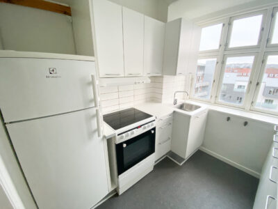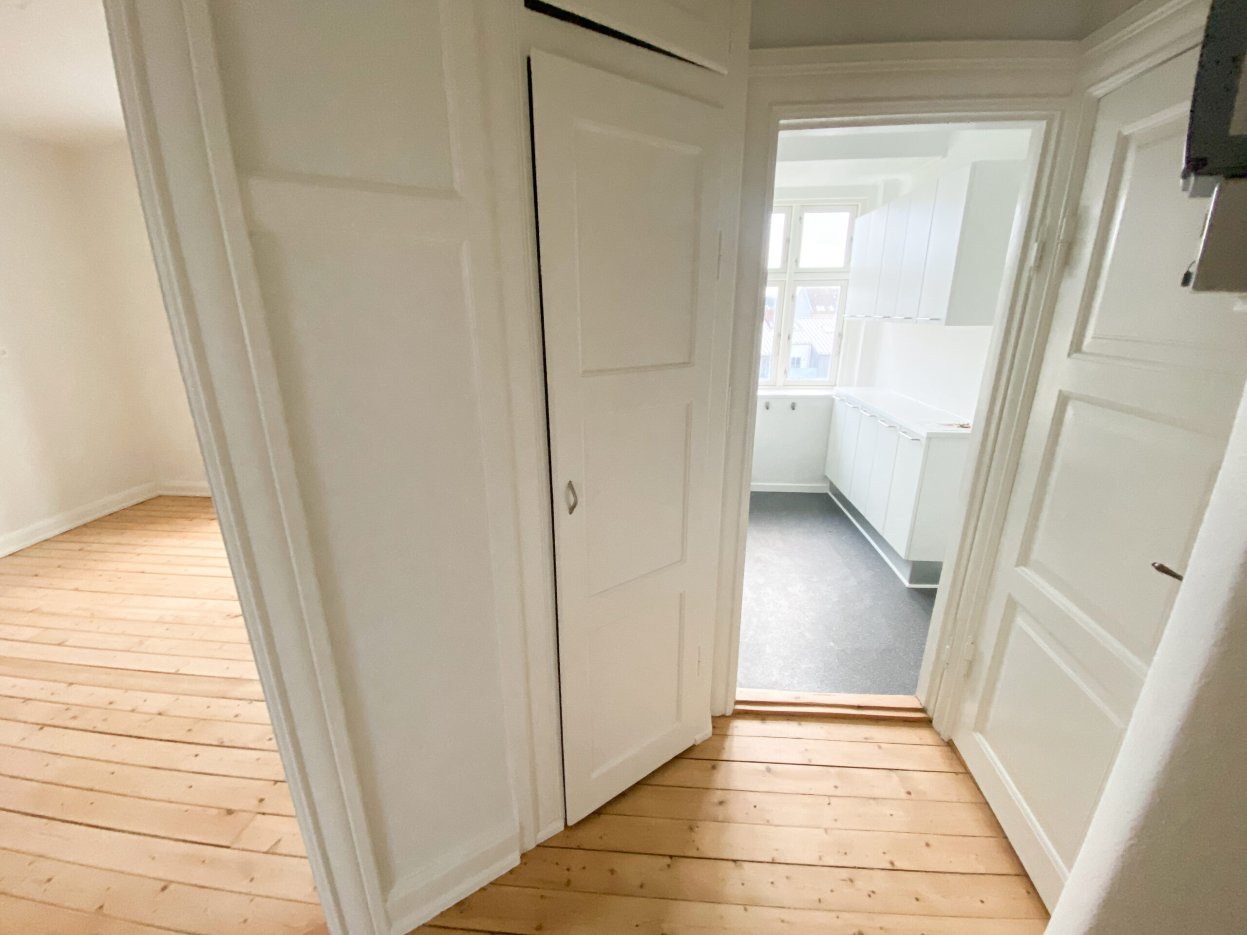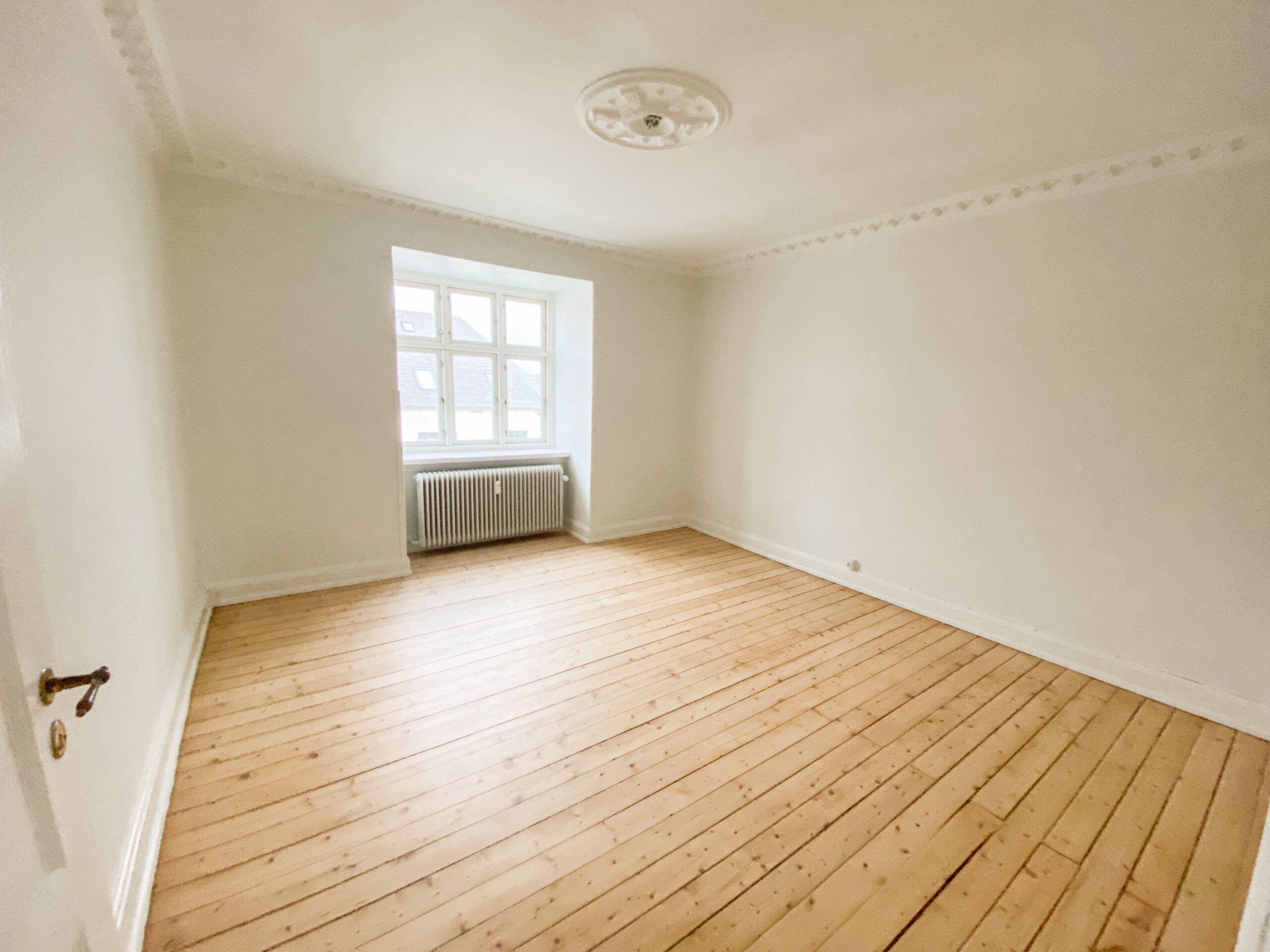 Lejligheden er ældre og fuld af charme med fine detaljer som høje paneler og nyslebne trægulve, der går gennem hele boligen. Denne kombination af klassisk elegance og moderne bekvemmelighed gør lejligheden helt unik.