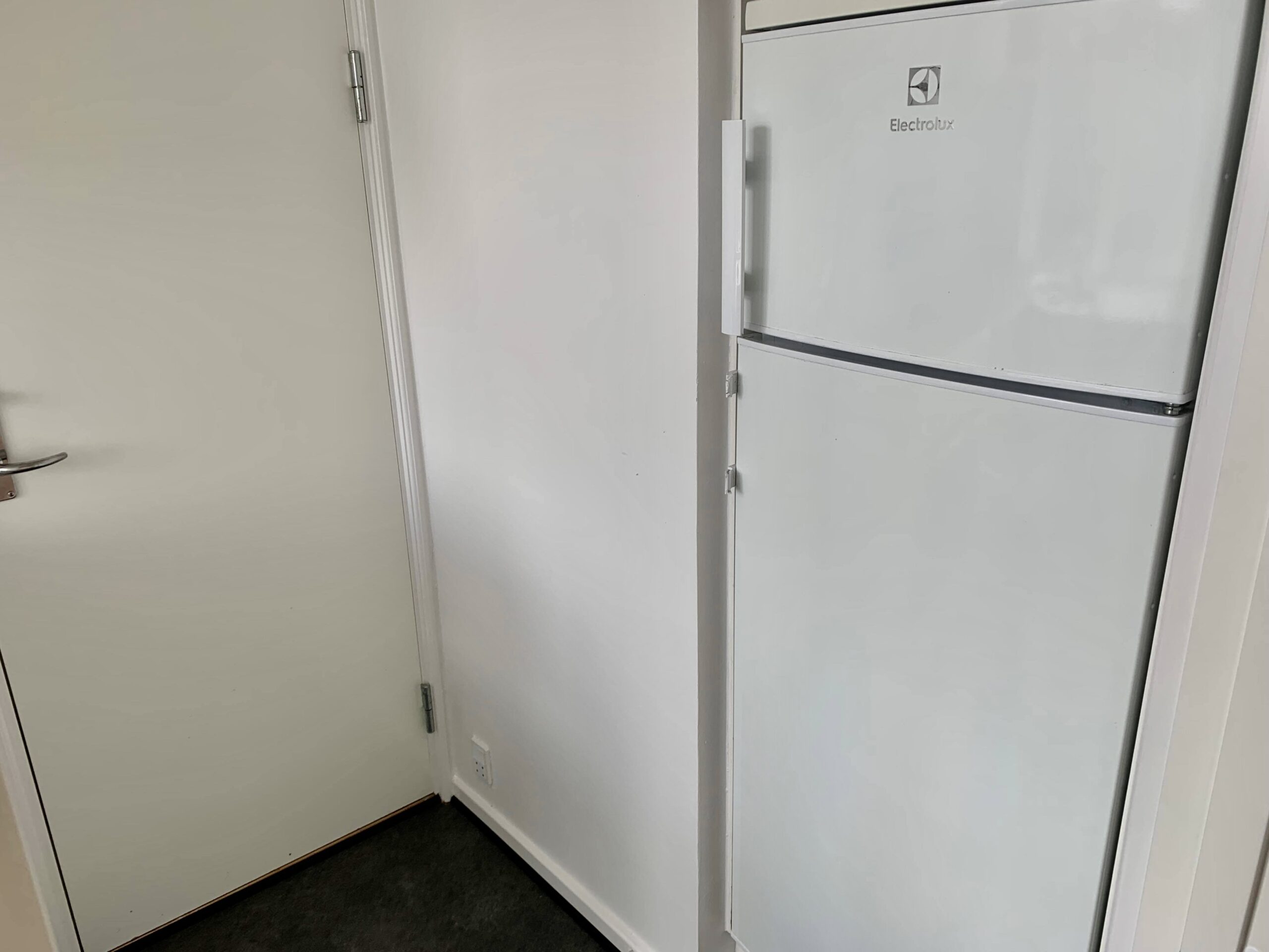 Stuen er aflang, hvilket gør det nemt at dele den op i spisestue og tv-stue. Fra stuen er der en dør indtil soveværelset. Det er også et godt rum, hvor der ikke er sat klædeskab ind, så man har mulighed for selv at indrette og vælge det. Fra soveværelset har vi så indgang til køkkenet. Det er mindre, men nyere.