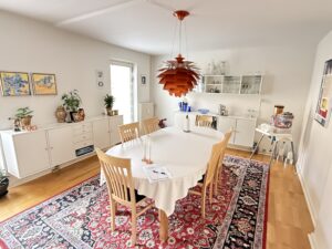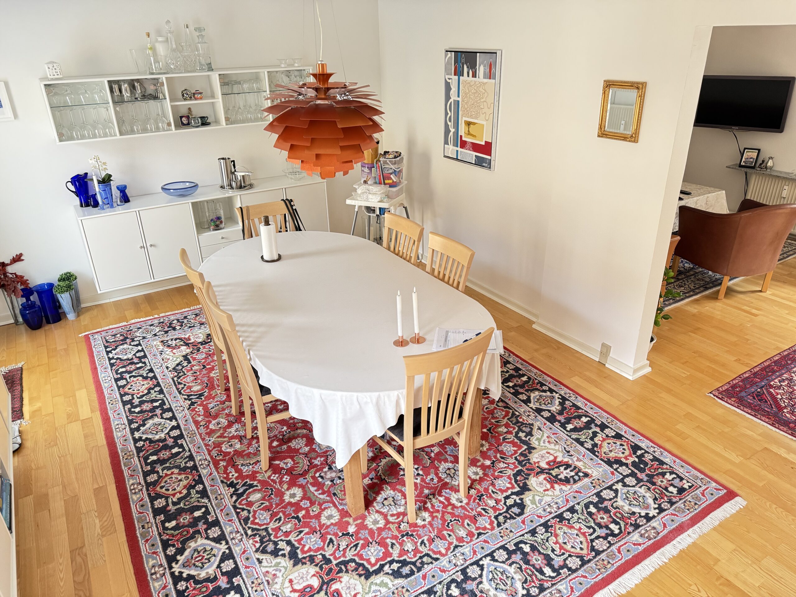 Der er således både stor spisestue med adgang til altanen, hyggeligt sofa eller tv-hjørne samt yderligere mulighed for hyggeligt hjørne.