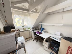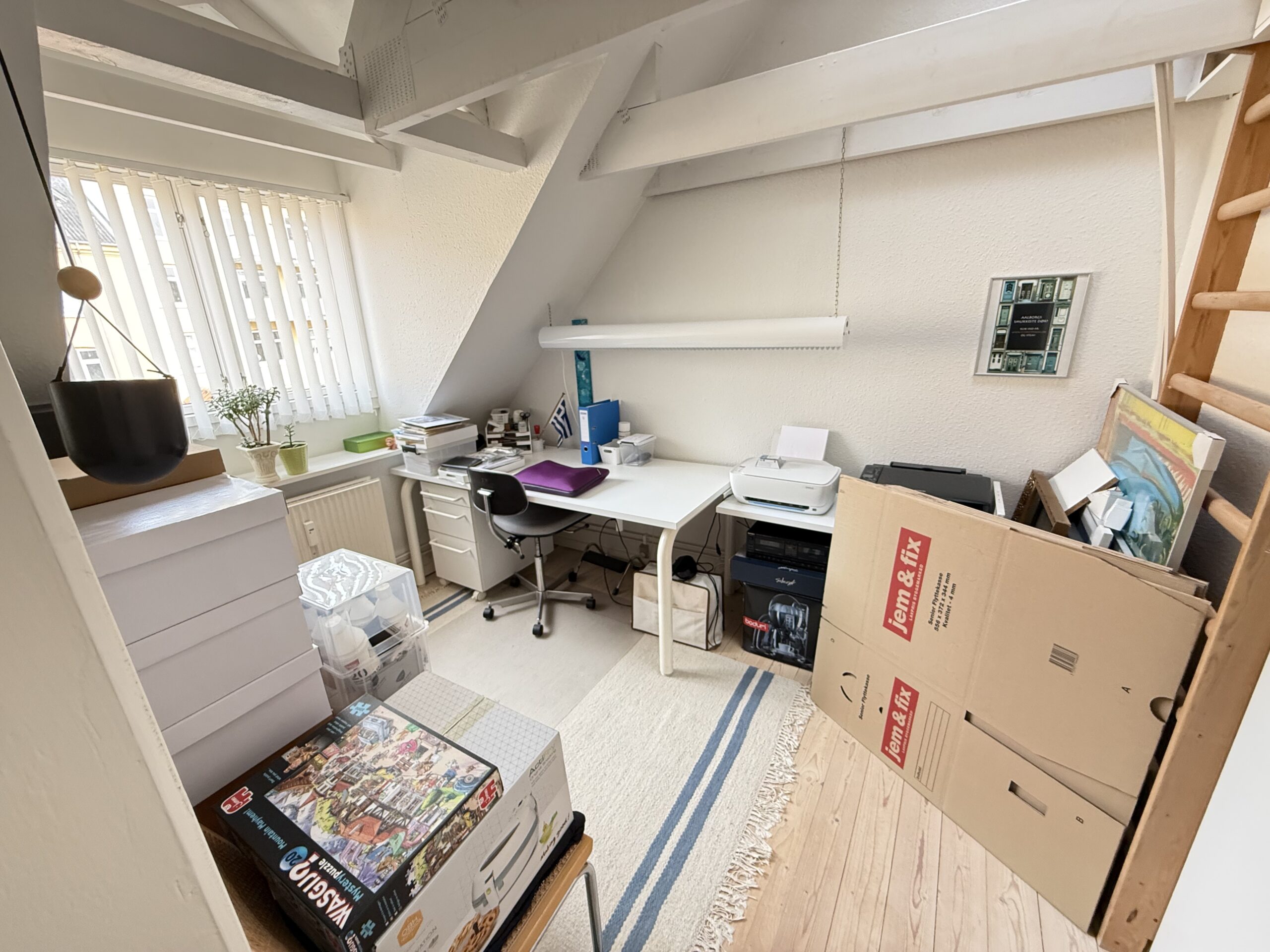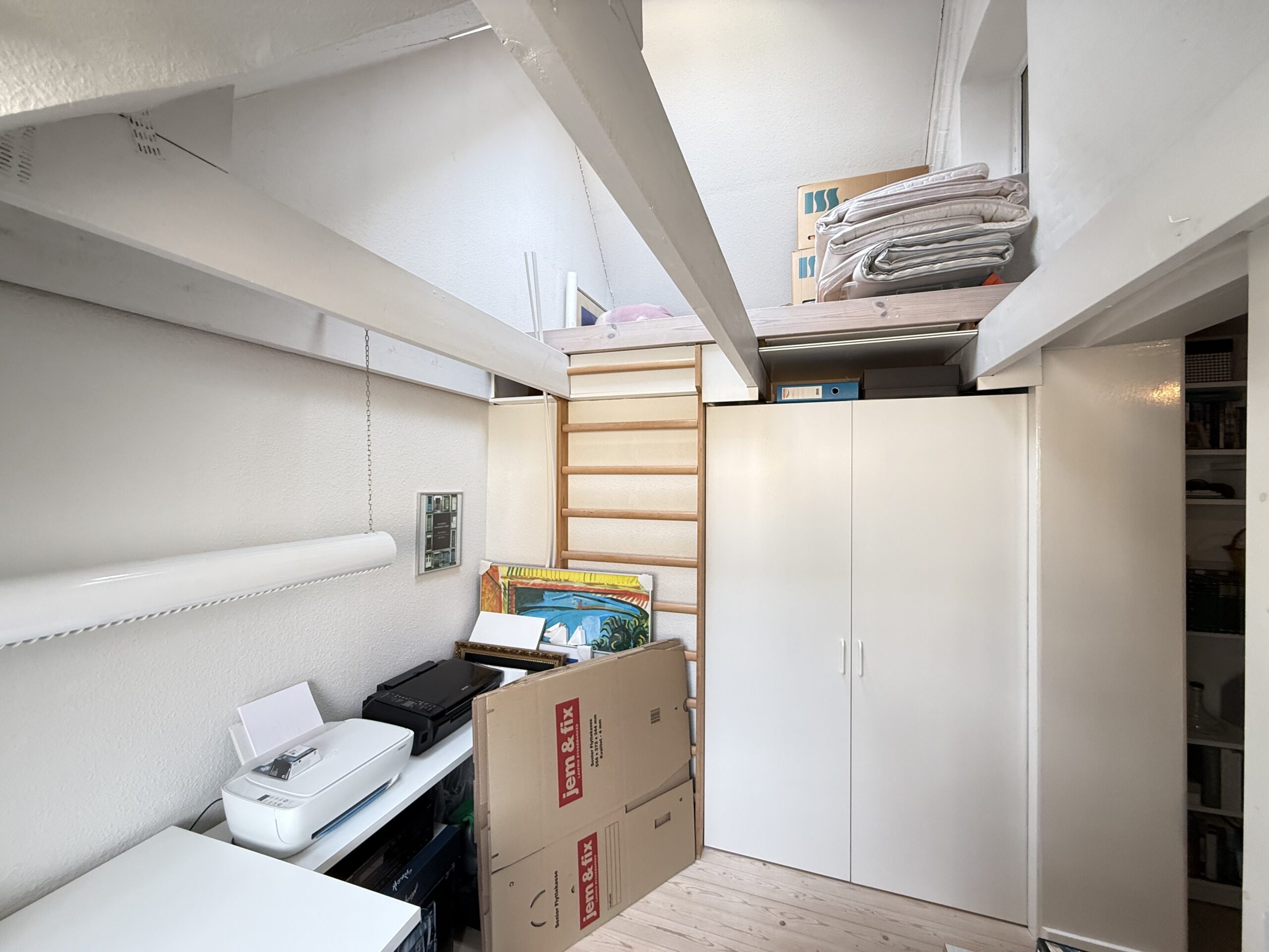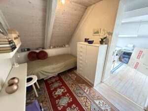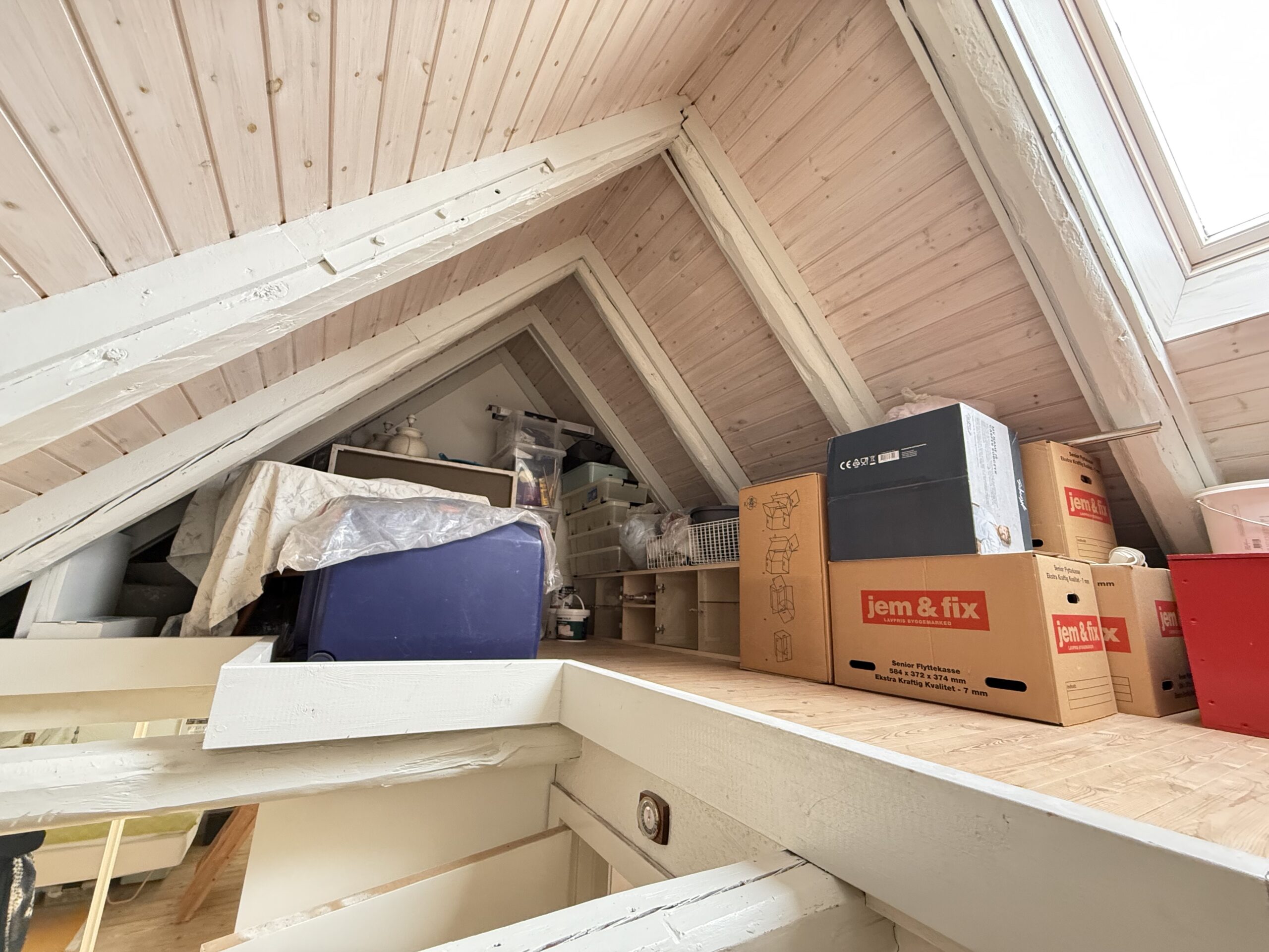 Den er indrettet med i alt 2,5 funktionelt værelser + hemse så det tilbyder fleksible muligheder for både familieliv og hjemmekontor, hvor et af værelserne praler med en hems for ekstra opbevaring eller en kreativ krog.