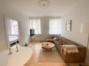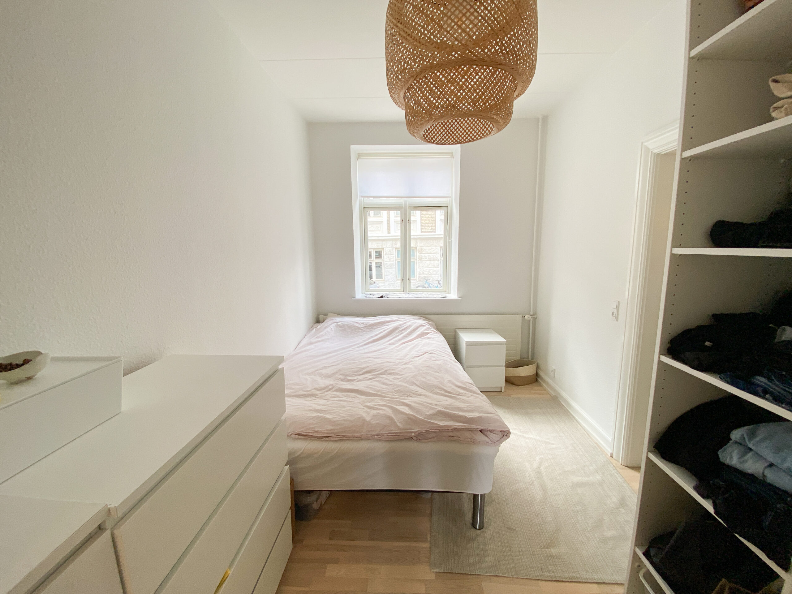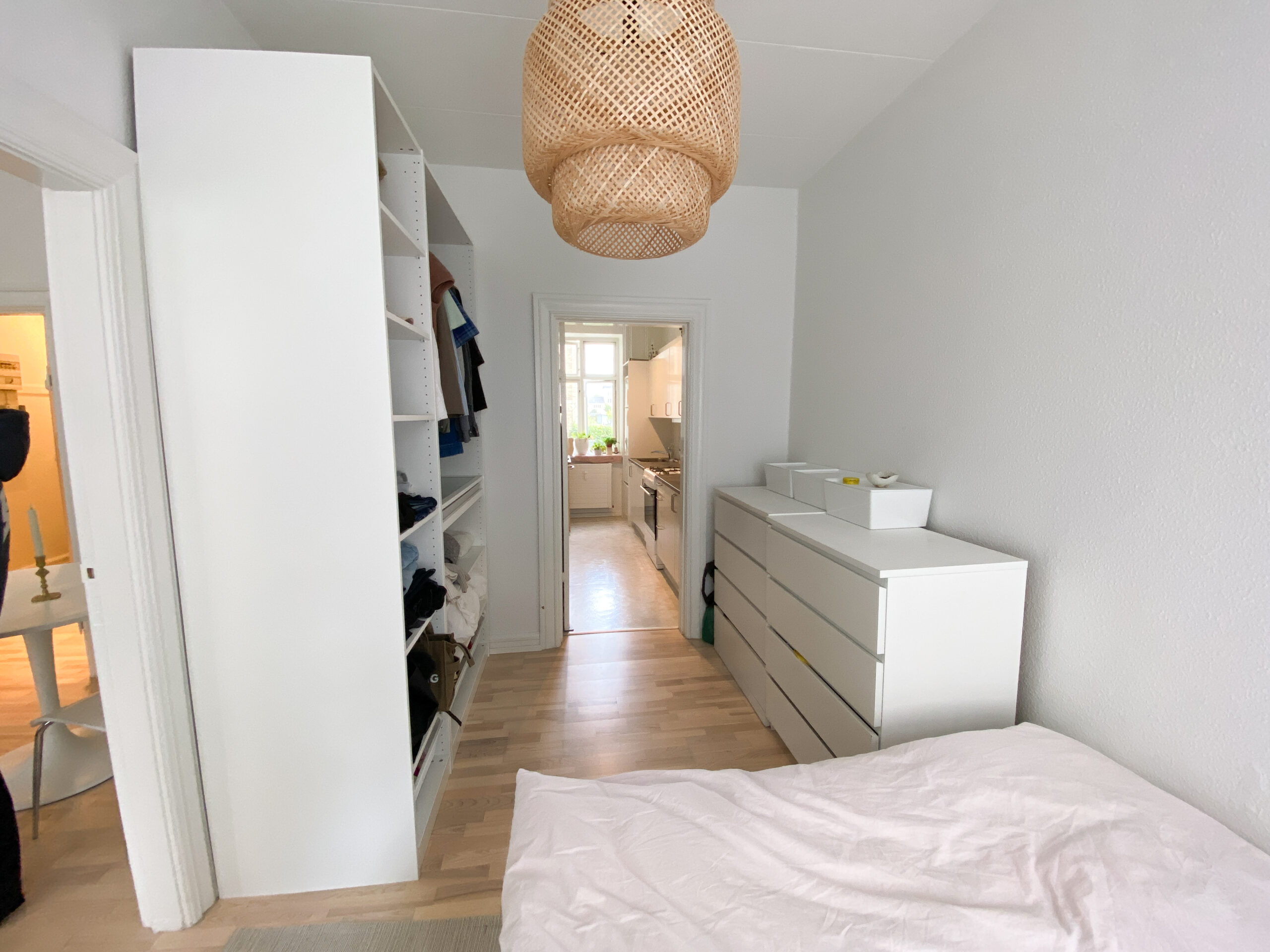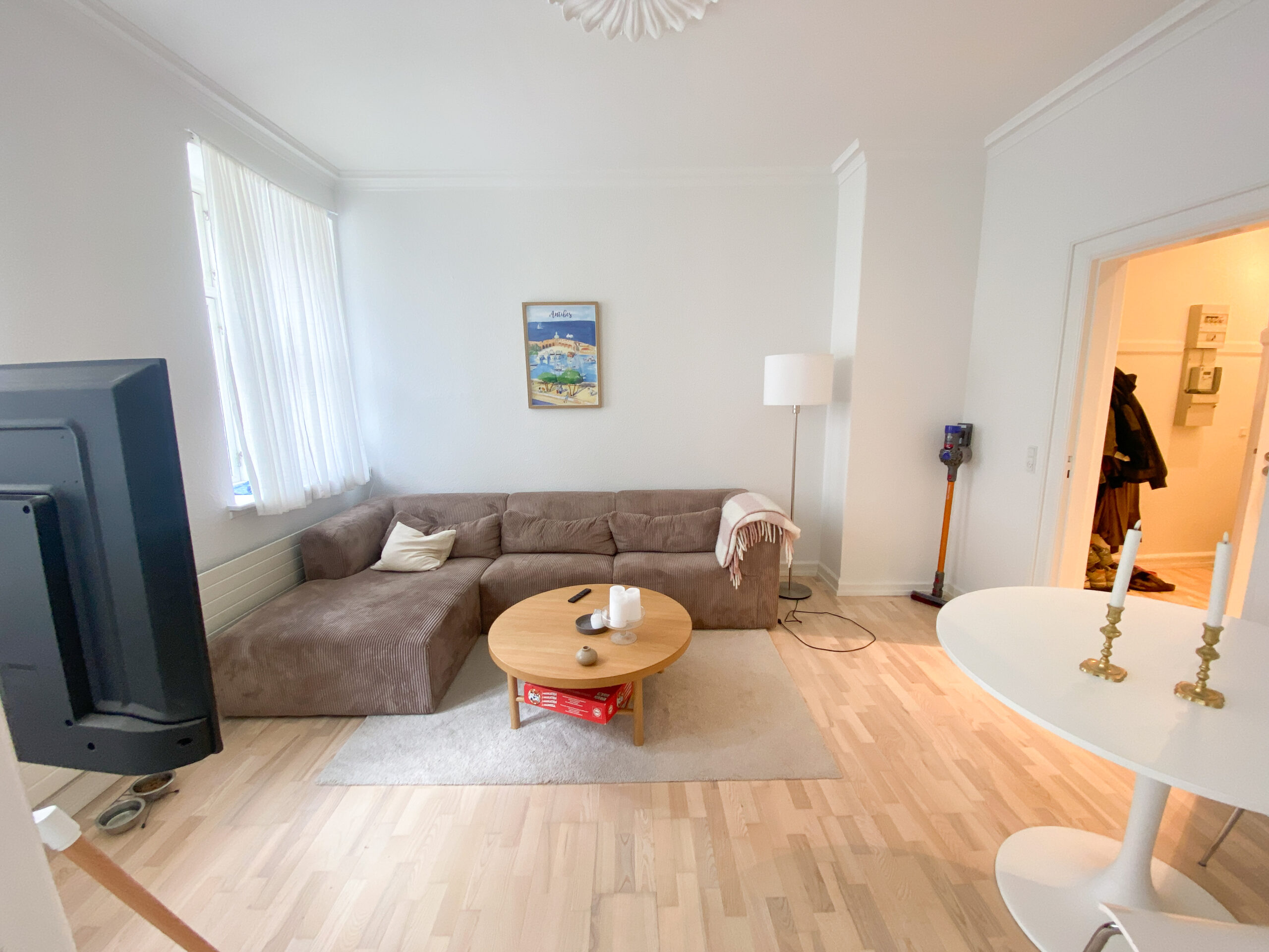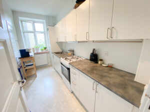 Lejligheden blev totaltrenoveret for cirka 4-5 år siden og fremstår derfor rigtig flot. Denne renovering inkluderede et stort og nyt køkken, der er både stilfuldt og praktisk. Køkkenet er lyst og har rigelig opbevaringsplads. Ideel mulighed for at udfolde dine kulinariske evner. Ligeledes har lejlighedens 2 store rum et flot lyst udseende, med godt lysindfald, grundet boligens store flotte vinduer