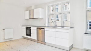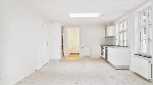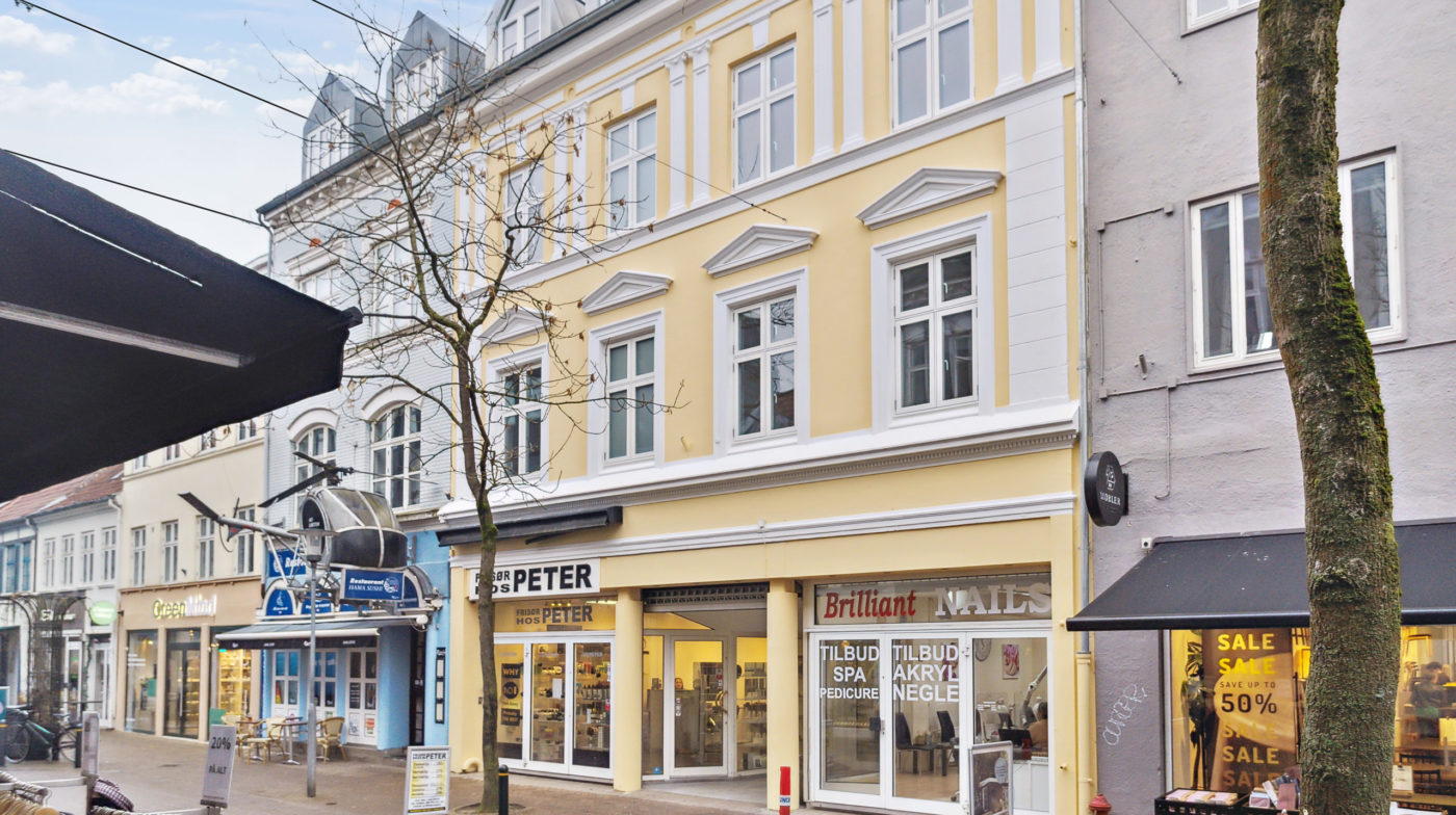 Nybygget luksuslejlighed i eksklusiv beboelsesejendom med seks andre luksuslejligheder til leje i gågåden i Odense Centrum.