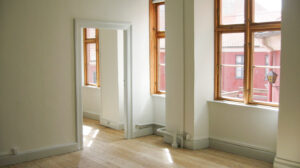 Lejligheden har afhøvlede gulve og dørtelefon.