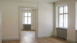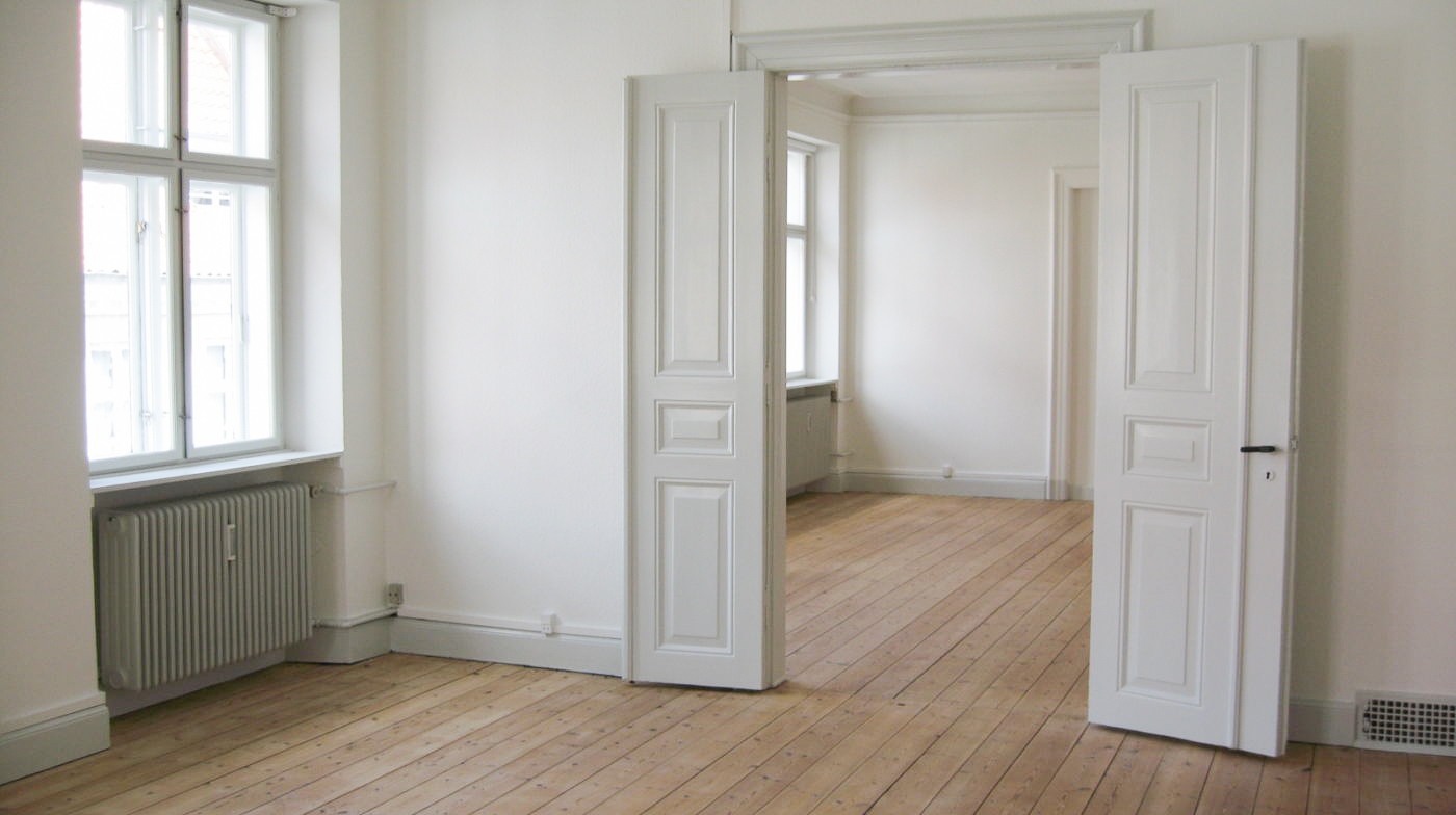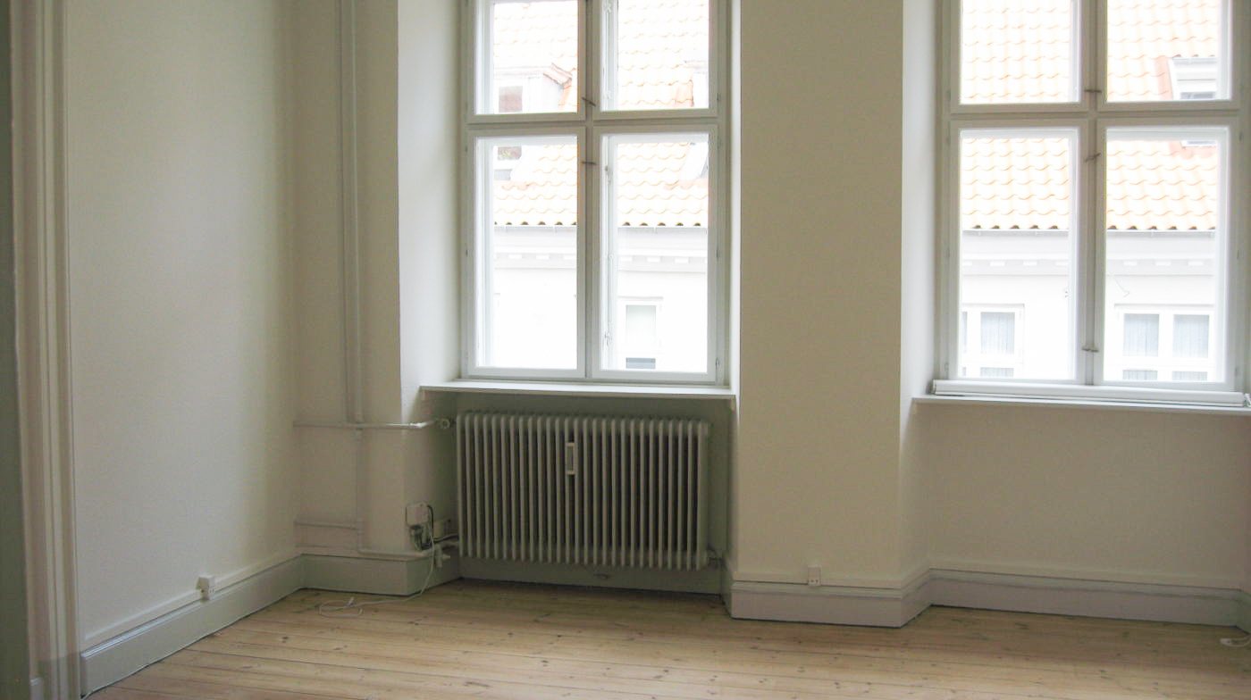 Lejligheden har entré med adgang til to store sammenhængende stuer, samt to værelser der er anvendelige både som soveværelse, børneværelse eller kontor.