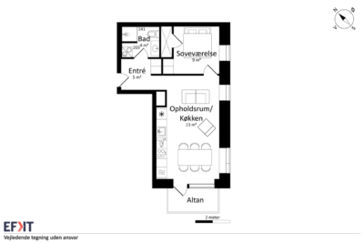 Lejlighederne henvender sig til unge par, singler eller seniorer. Materialerne afspejler i høj grad tiden, og der er kvalitet og en flot rød tråd over hele linjen – så er det bare op til dig at sætte dit præg med din personlige indretning. Alle boliger beriges af et åbent opholdsmiljø, og det er herfra, altanen tilgås. Om du får glæde af morgen- eller aftensolen, så er det bare om at komme ud og nyde det eksklusive uderum, der giver plads til loungesættet og en grill. Denne lejlighed har sydvendt altan.