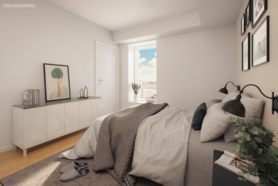 Lejlighederne henvender sig til unge par, singler eller seniorer. Materialerne afspejler i høj grad tiden, og der er kvalitet og en flot rød tråd over hele linjen – så er det bare op til dig at sætte dit præg med din personlige indretning. Alle boliger beriges af et åbent opholdsmiljø, og det er herfra, altanen tilgås. Om du får glæde af morgen- eller aftensolen, så er det bare om at komme ud og nyde det eksklusive uderum, der giver plads til loungesættet og en grill. Denne lejlighed har sydvendt altan.