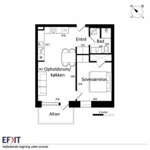 Lejlighederne henvender sig til unge par, singler eller seniorer. Materialerne afspejler i høj grad tiden, og der er kvalitet og en flot rød tråd over hele linjen – så er det bare op til dig at sætte dit præg med din personlige indretning. Alle boliger beriges af et åbent opholdsmiljø, og det er herfra, altanen tilgås. Om du får glæde af morgen- eller aftensolen, så er det bare om at komme ud og nyde det eksklusive uderum, der giver plads til loungesættet og en grill. Denne lejlighed har sydvendt altan.