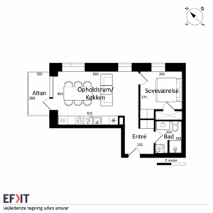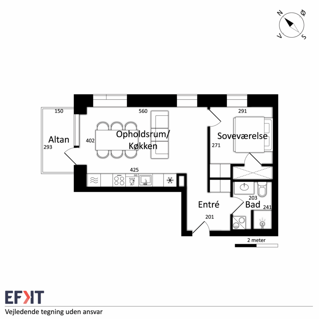 Lejlighederne henvender sig til unge par, singler eller seniorer. Materialerne afspejler i høj grad tiden, og der er kvalitet og en flot rød tråd over hele linjen – så er det bare op til dig at sætte dit præg med din personlige indretning. Alle boliger beriges af et åbent opholdsmiljø, og det er herfra, altanen tilgås. Om du får glæde af morgen- eller aftensolen, så er det bare om at komme ud og nyde det eksklusive uderum, der giver plads til loungesættet og en grill. Denne lejlighed har vestvendt altan.