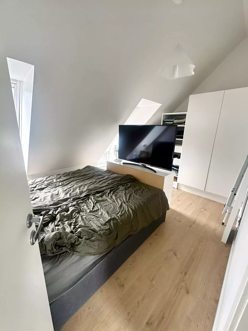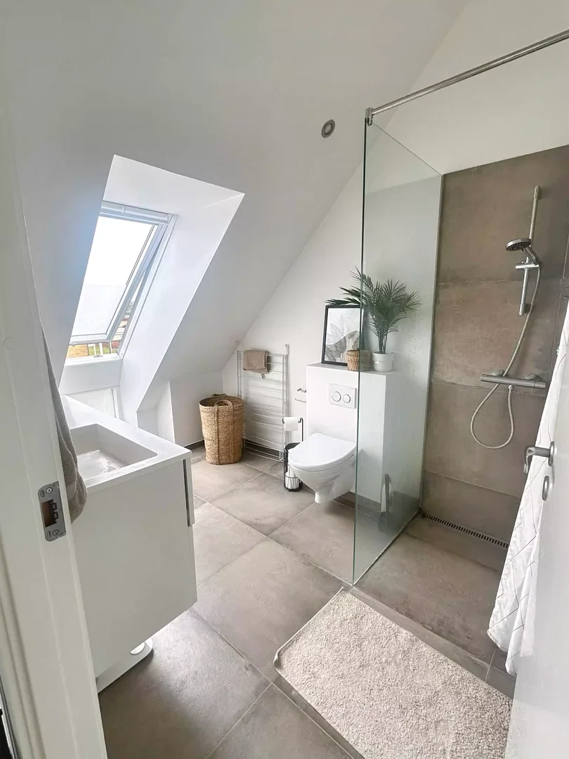 På første sal finder du et stort soveværelse samt to yderligere værelser, hver med indbyggede skabe, der tilbyder rigelig plads til familie eller gæster. Det luksuriøse badeværelse er både rummeligt og stilfuldt, og hele huset er udstyret med gulvvarme, der skaber en behagelig atmosfære året rundt.