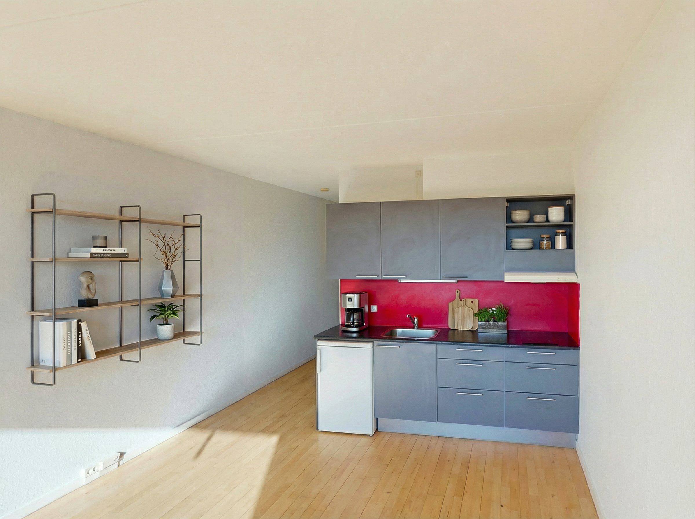 Lejligheden byder på en funktionel planløsning med to værelser, hvor lyset strømmer ind og skaber en indbydende stemning. Stuen er rummelig og perfekt til afslapning, mens køkkenet er praktisk indrettet med gode arbejdsflader. Her kan du nemt tilberede lækre måltider, mens du nyder udsigten til de grønne områder udenfor. Badeværelset er funktionelt og indbydende, hvilket fuldender denne skønne bolig.