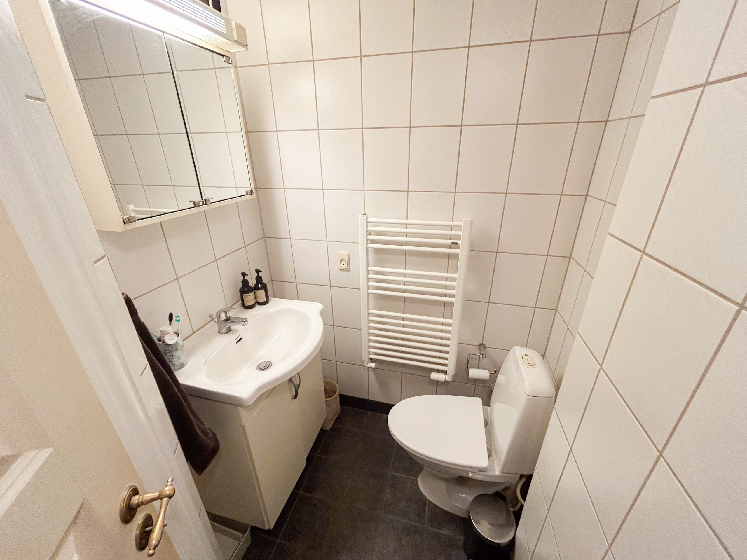 Badeværelset fremstår pænt og funktionelt med god plads og en fin indretning. Boligen er ideel for dig, der ønsker at bo tæt på Aalborg, men stadig nyde roen og det lokale bymiljø i Nørresundby.