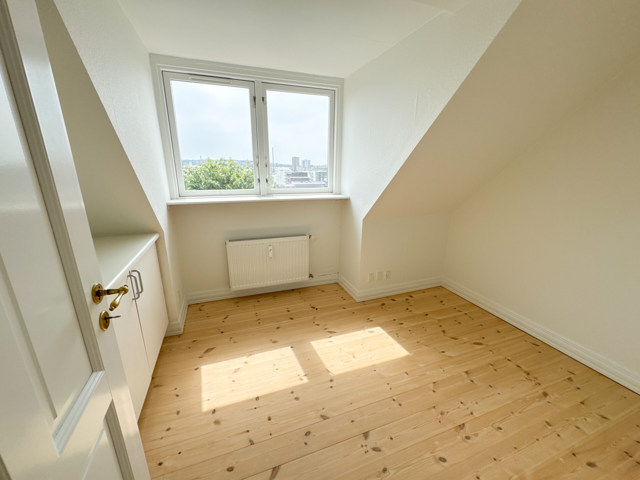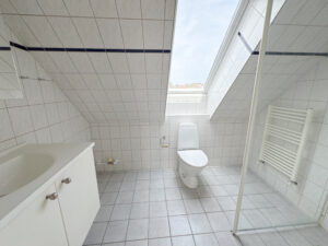 Badeværelset er rummeligt og velholdt, med plads til både opbevaring og komfort. Derudover byder boligen på et separat soveværelse med plads til både seng og garderobe.