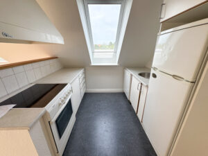 Lejligheden byder på et dejligt køkken i åben forbindelse med stuen, hvilket skaber et lyst og socialt opholdsrum. Køkkenet er moderne og praktisk indrettet med god skabsplads og opvaskemaskine, så hverdagen bliver lidt nemmere. Fra stuen er der udgang til en privat altan – et skønt ekstra rum til både afslapning og hyggelige aftener i sommerhalvåret.