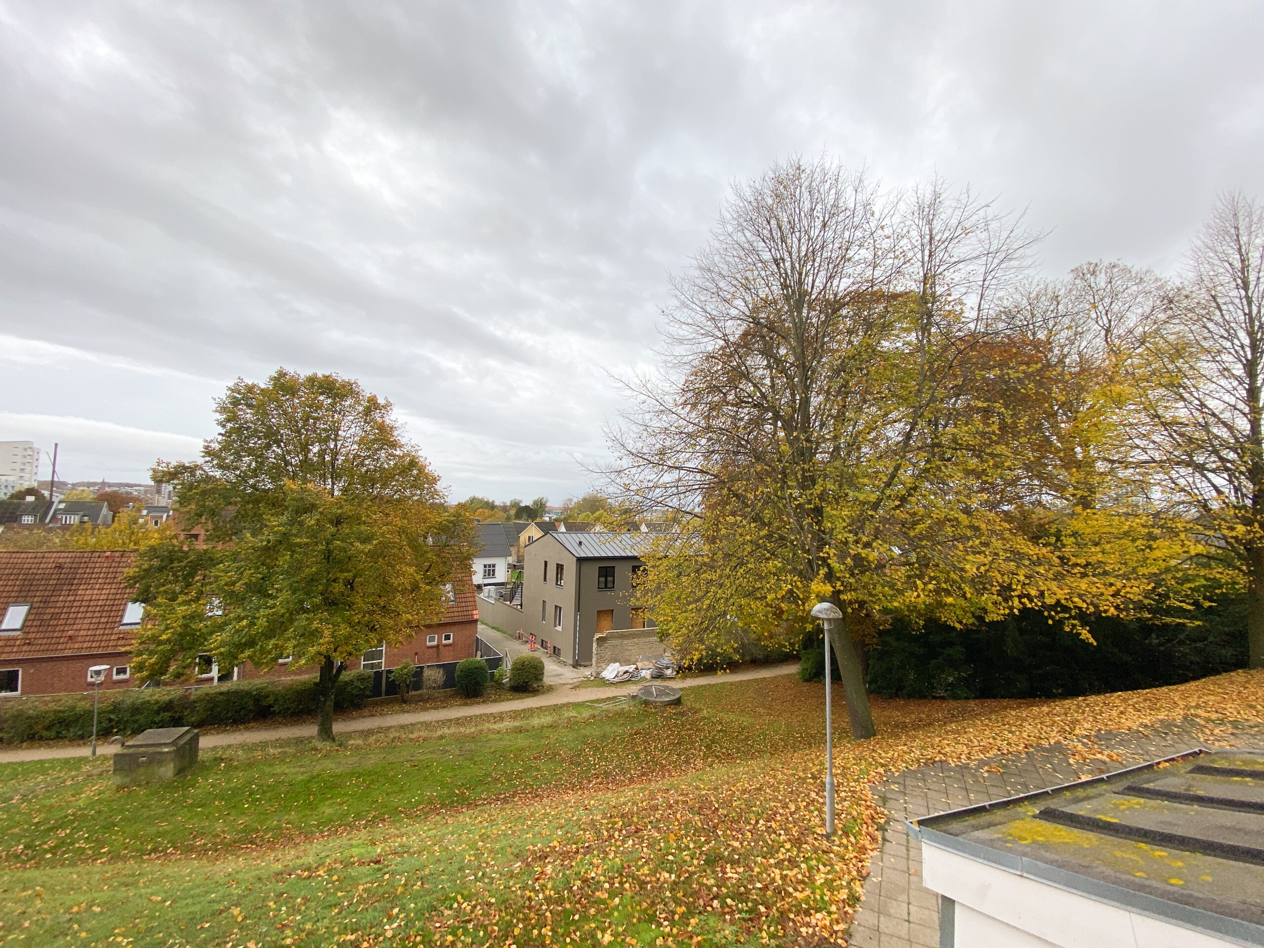 Der er gratis parkering ude foran bygningen, men hvor først-til-mølle princippet gælder, da der ikke er en p-plads til alle lejligheder.