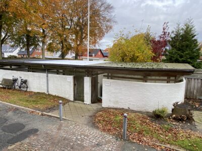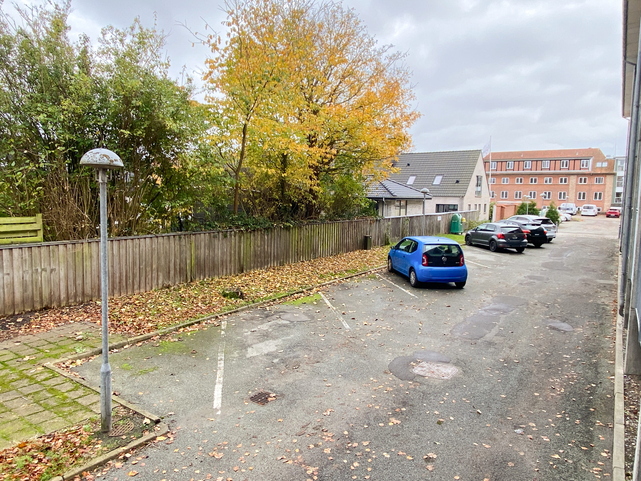 Der er parkering ude foran bygningen, men hvor først-til-mølle princippet gælder, da der ikke er en p-plads til alle lejligheder.