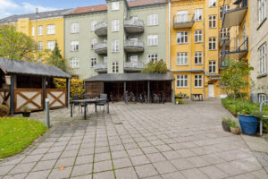 Ejendommen har desuden en porttelefon, som giver ekstra sikkerhed, samt et fælles vaskeri i kælderen, hvilket gør det lettere at holde styr på vasketøjet. Ejendommen er beliggende få minutters gang fra gågadesystemet og Nordkraft.