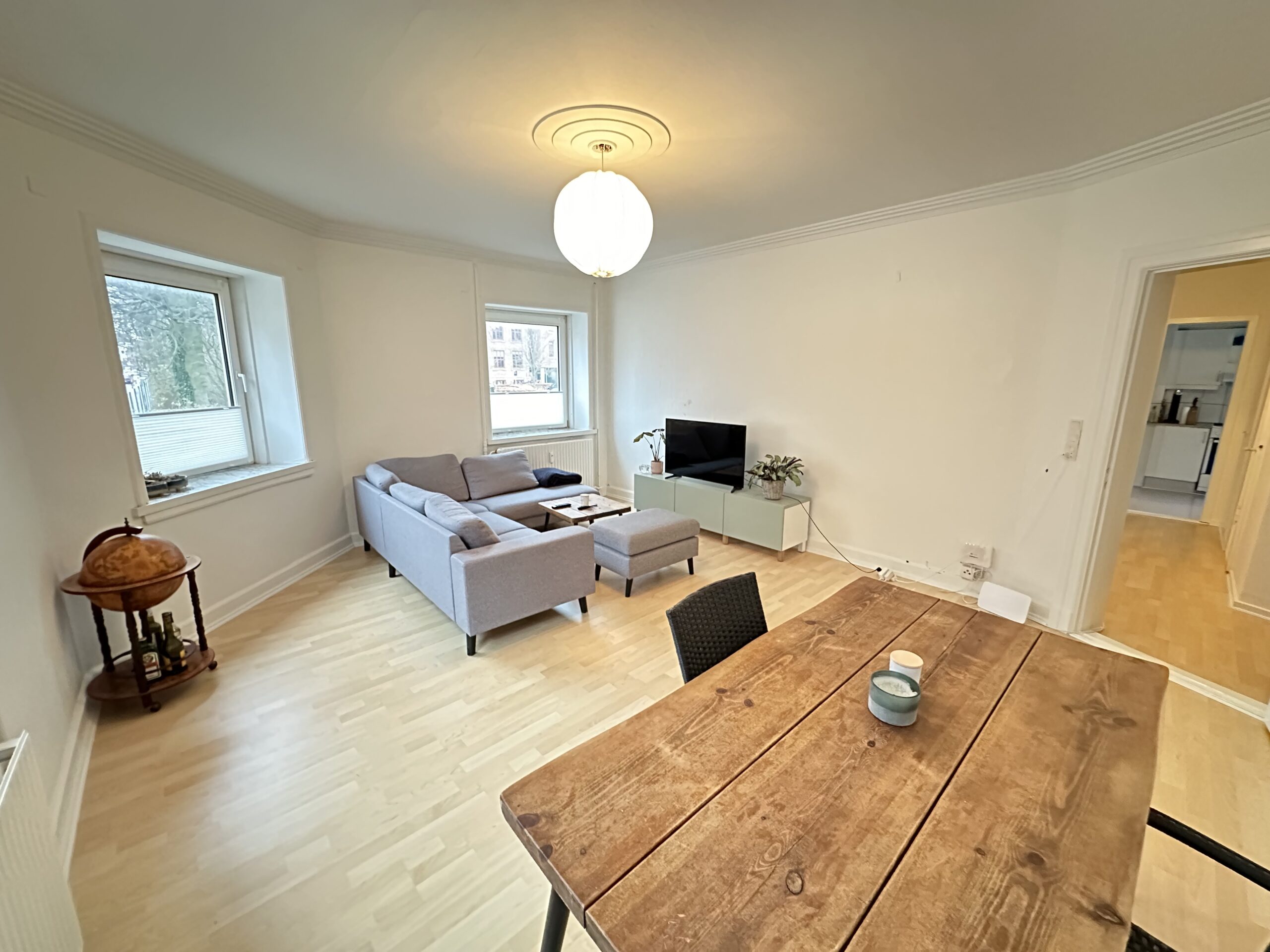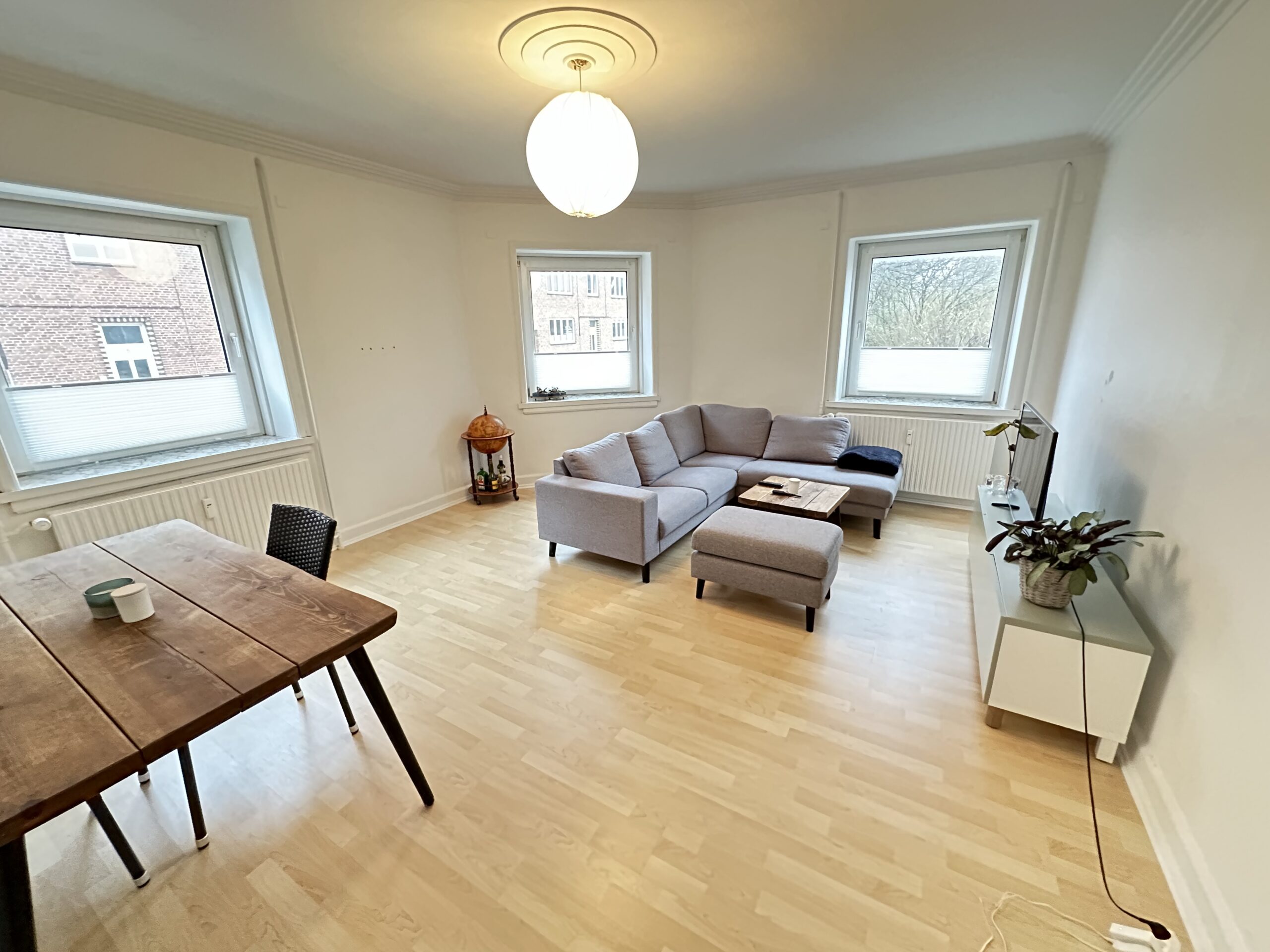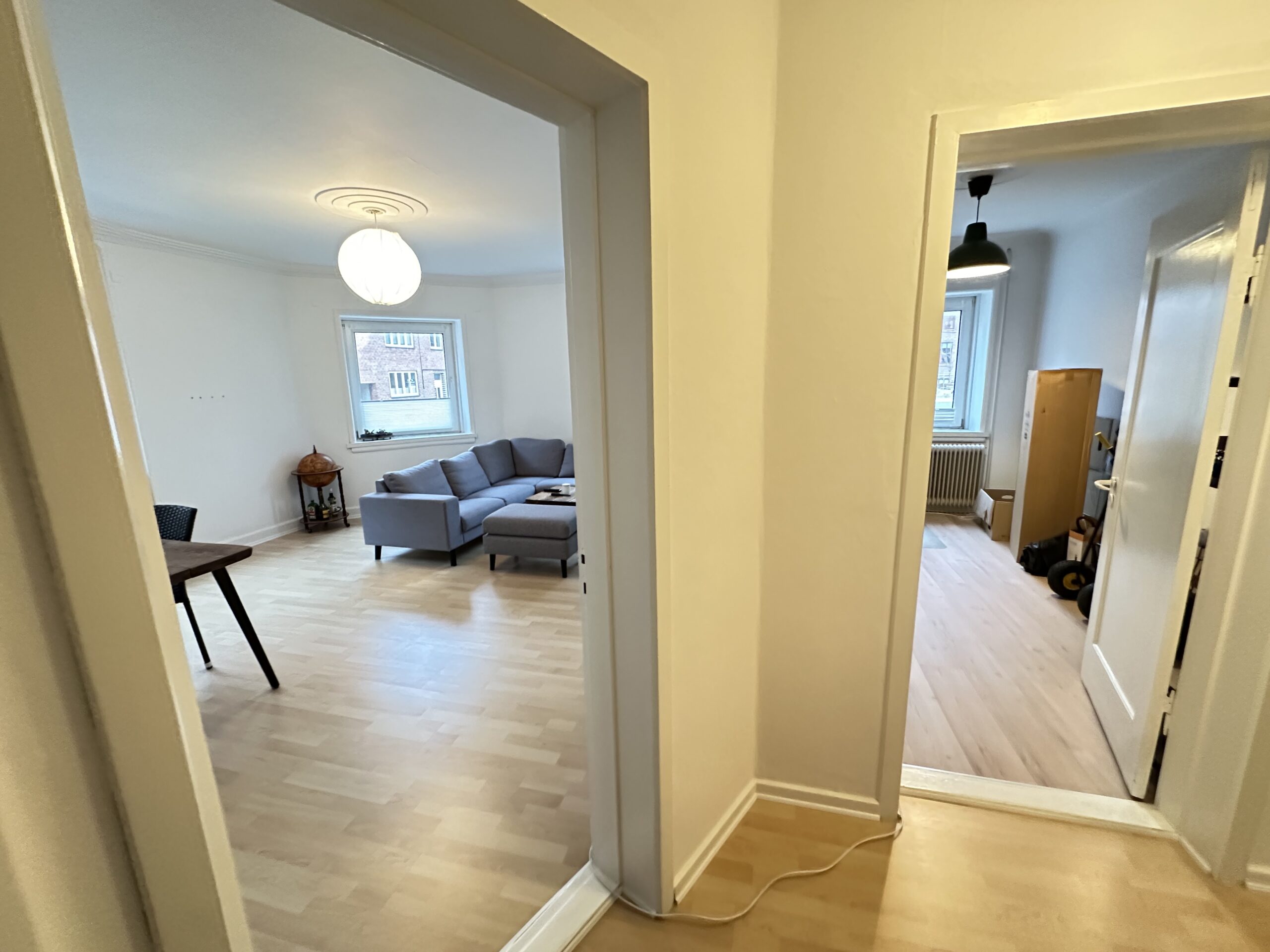 Først byder den rummelige entré dig velkommen ind i hjemmets hjerte – stuen. Med sine store vinduer, der lader lyset strømme ind, og de nye gulve, der strækker sig gennem hele lejligheden, er dette rum en sand fornøjelse at opholde sig i. Den åbne planløsning gør det nemt at indrette og skabe din egen personlige oase.