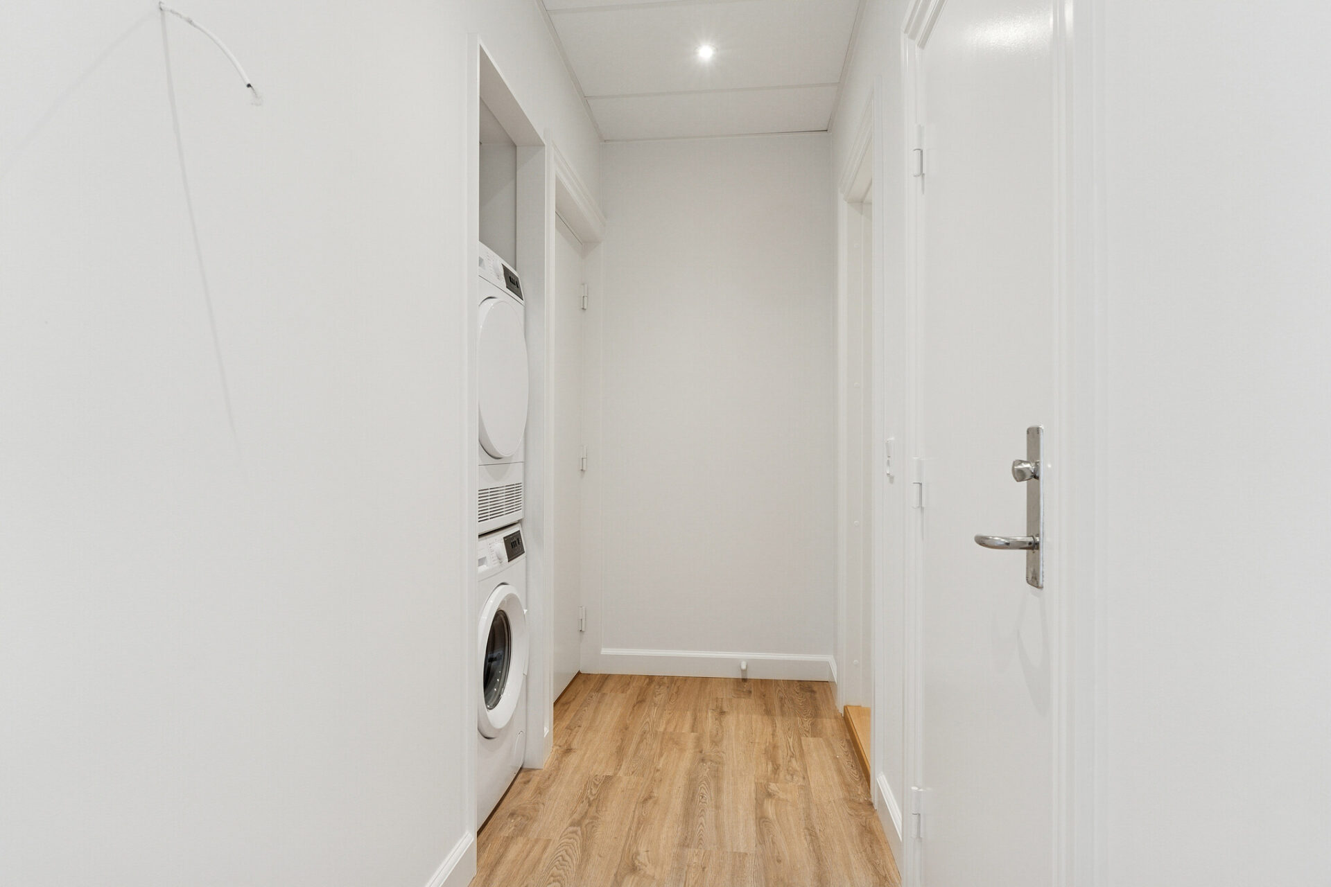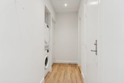 I entréen er der installeret vaskemaskine og tørretumbler, så du har praktiske vaskefaciliteter lige ved hånden – diskret placeret og nemme at tilgå.