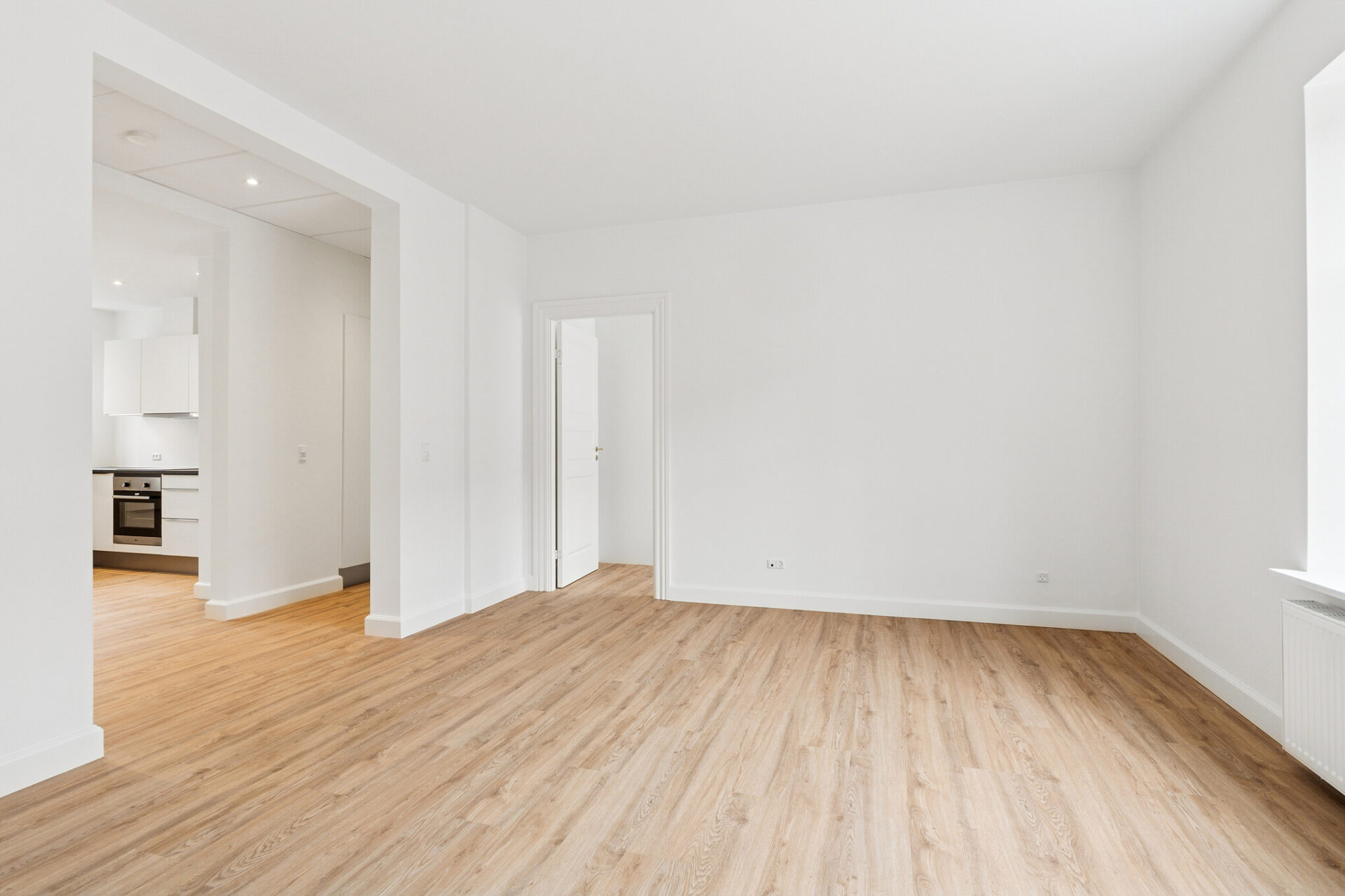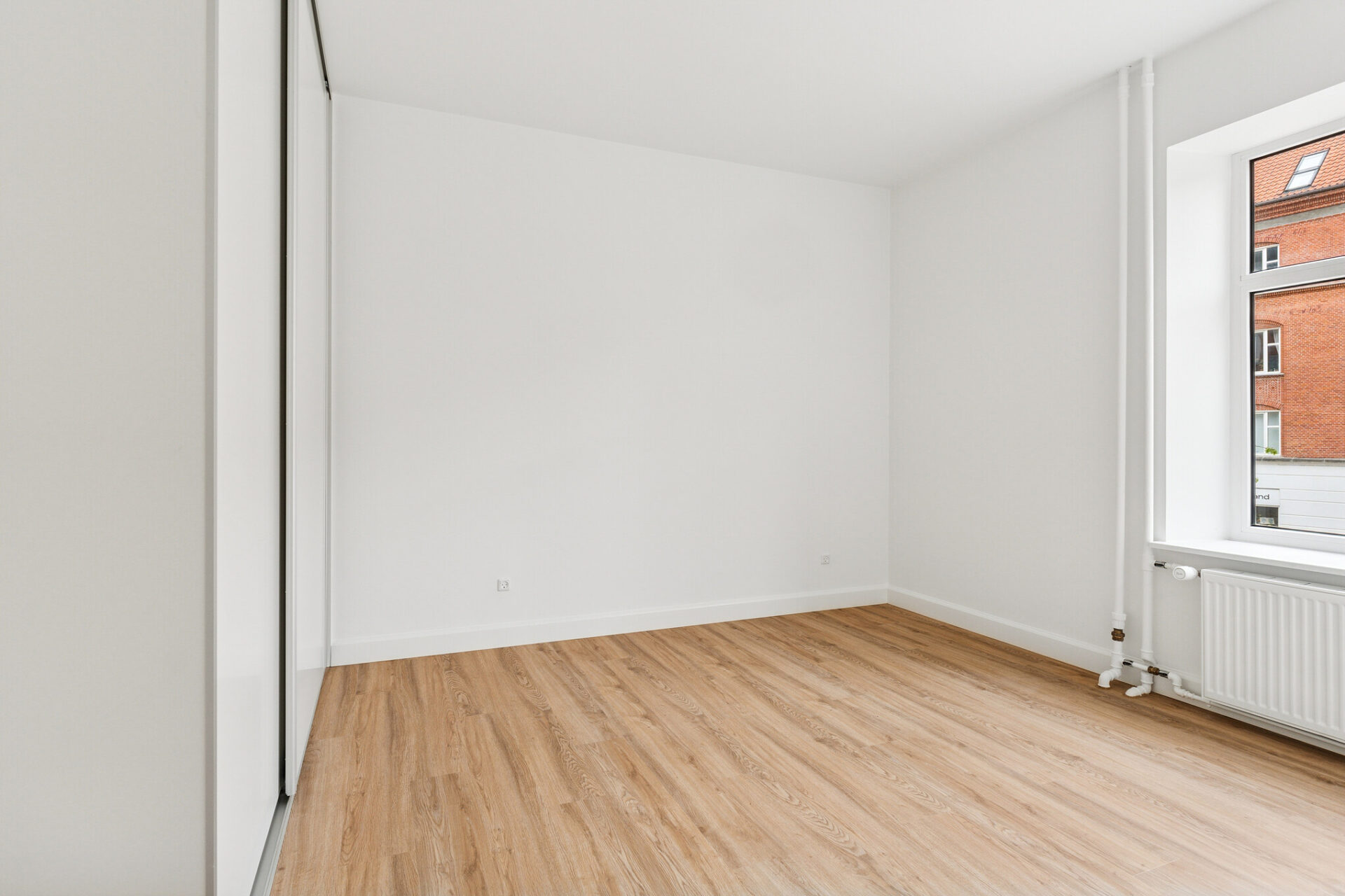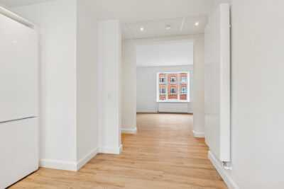 Overalt i lejligheden er der lagt nye, slidstærke LVT-vinylgulve i flot trælook, som tilfører boligen varme og stil – og som samtidig er nemme at vedligeholde.