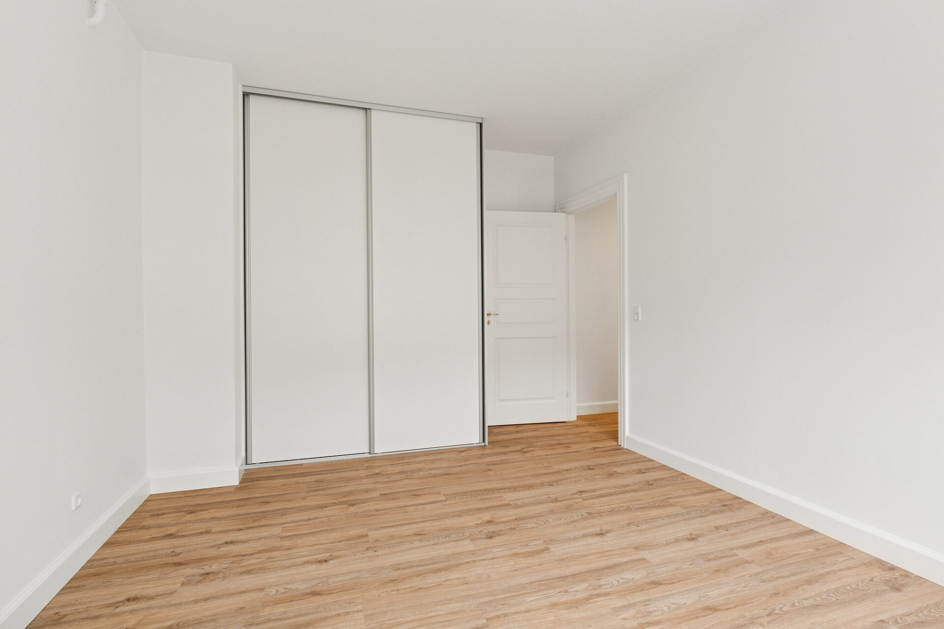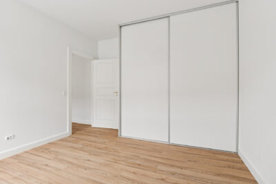 Begge soveværelser er udstyret med store garderobeskabe med skydelåger, som sikrer masser af opbevaringsplads og et ryddeligt udtryk.
