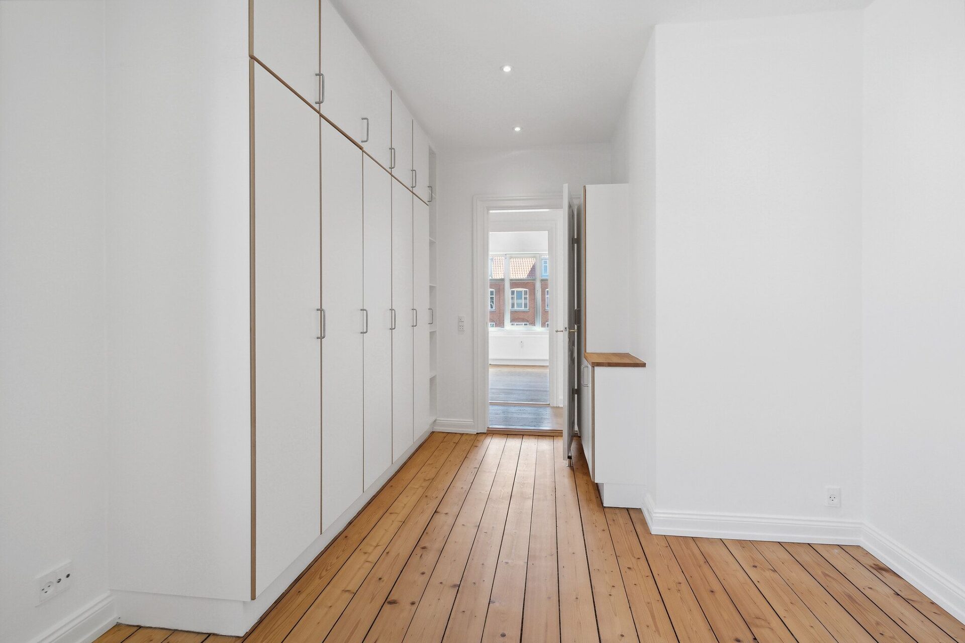 Soveværelset har indbygget skydelågeskab med god opbevaringsplads.